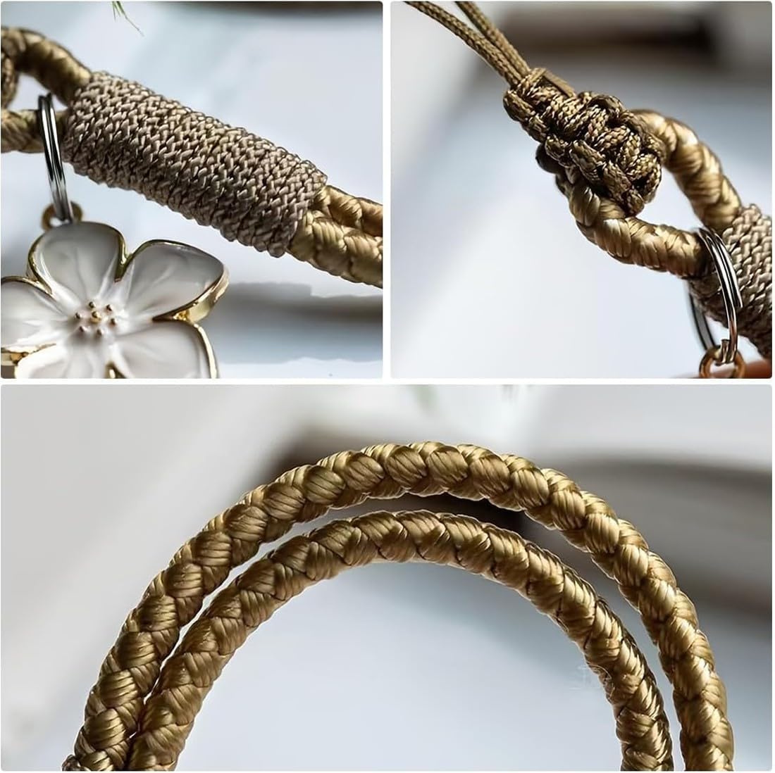 DESIGN ALLA MODA: questo Ciondolo per Cellulare presenta un design floreale vintage realizzato in corda intrecciata. Si distinguerà dalla massa con questo elegante e pratico ciondolo per cellulare. UTILIZZO AMPIO: Questo Catenelle per Cellulare non solo è adatto a tutti i tipi di custodie per cellulari, ma anche a portafogli, borse e chiavi. Può essere indossato al polso per un uso flessibile. I nostri accessori per cellulari si adattano alla maggior parte delle custodie per cellulari, senza interferire con la ricarica cablata o wireless, i pulsanti o le porte. Dimensioni: questo Cordino per Cellulare da Polso è lungo 23 cm con un cavo spesso 4 mm. Si adatta alla maggior parte dei telefoni cellulari e le permette di trovare rapidamente il suo telefono quando deve scattare una foto o rispondere a una chiamata, senza dover rovistare in tasca, nel portafoglio o nelle chiavi. PREVENIRE PERDITE E CADUTE: Ciondolo per Cellulare si aggancia saldamente alla custodia del suo telefono o dispositivo. Sia che stia facendo shopping, viaggiando, facendo la baby sitter, facendo escursioni, in vacanza, portando a spasso il cane, andando in bicicletta o scattando foto, questa catena per cellulare libera le sue mani per fare altre cose e riduce il rischio che il telefono le scivoli di mano o si perda. Regalo ideale: Catenelle per Cellulare è il regalo ideale per le figlie, le compagne, le madri e altri durante le festività. Questo è un ciondolo per cellulare che ogni donna amerà.