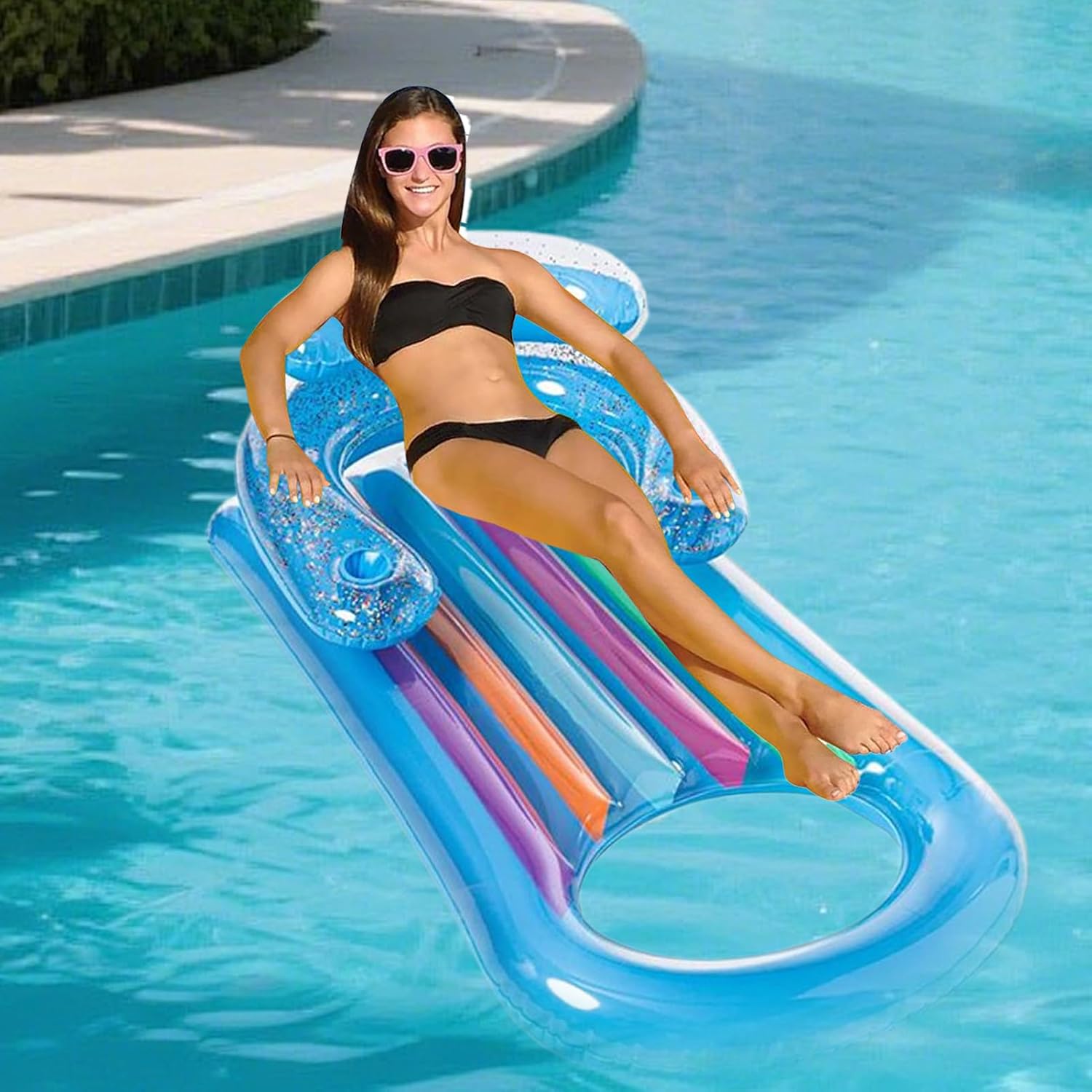Piacere di galleggiamento ottimizzato: la geometria di galleggiamento appositamente progettata combinata con supporti adatti alle bevande e materiale resistente agli spruzzi crea un'esperienza di nuoto senza sforzo, completata da doppi vani portaoggetti nella zona della base Estetica moderna: l'innovativo design a strati con linee di contorno chiare conferisce un aspetto contemporaneo, attira l'attenzione in acqua e sulla terra grazie alla trasparenza controllata e alla profondità del colore magnetica Materiale premium: pellicola multistrato ad alta densità con camere d'aria integrate e zone elastiche con doppie cuciture garantisce un'ottima resistenza allo strappo e stabilità dimensionale in piscina Regolazione della forma del corpo: il design intelligente si adatta naturalmente a tutti i tipi di corporatura e garantisce una distribuzione uniforme del peso. Che sia in piscina, al lago o - il lettino gonfiabile offre una galleggiabilità stabile e un comfort ergonomico per ogni utente Sgonfiaggio rapido: l'innovativo sistema d'aria consente di regolare il volume dell'aria in pochi secondi - Ideale per l'uso spontaneo o per lo stoccaggio salvaspazio con la massima facilità d'uso