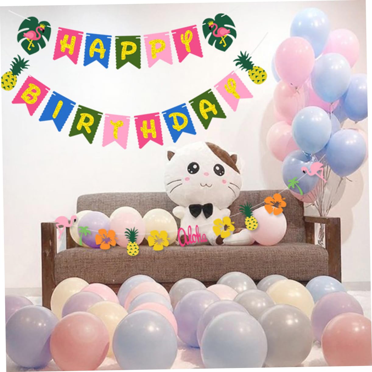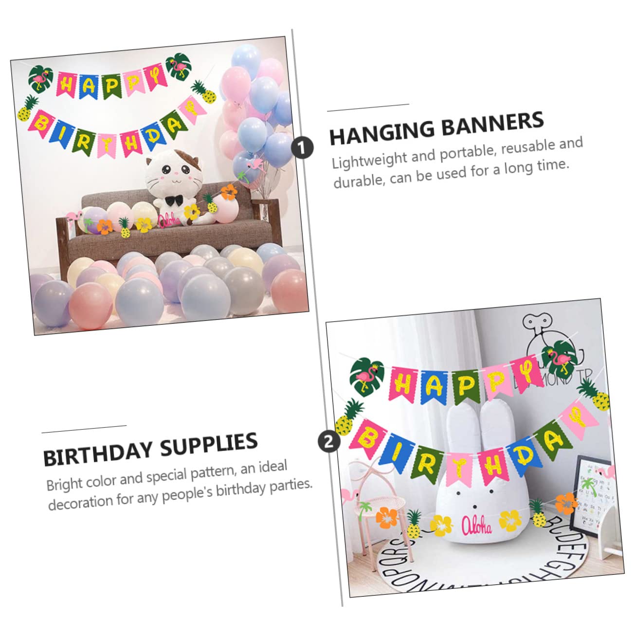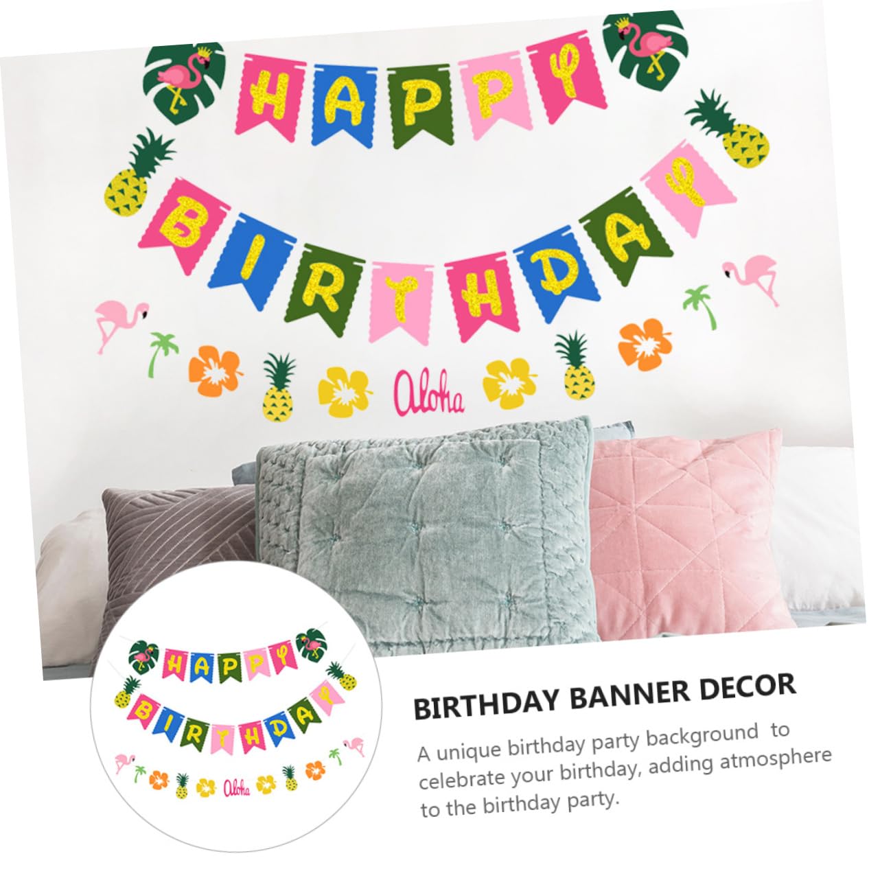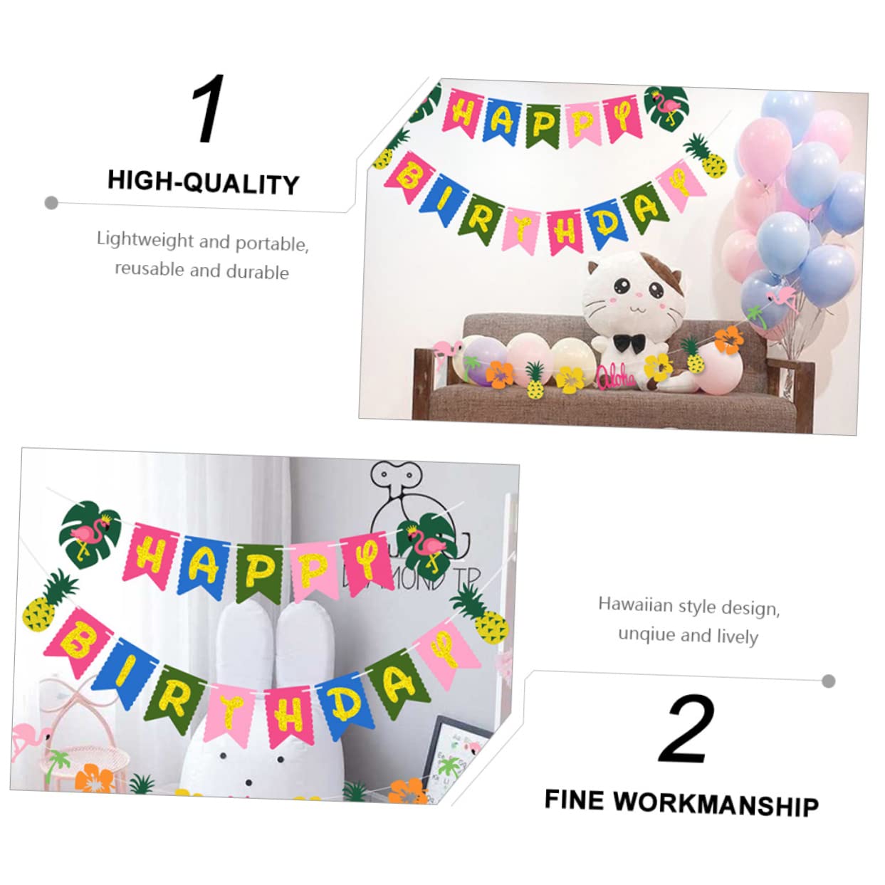 Il design in stile hawaiano, unico e vibrante, rende la tua festa di compleanno indimenticabile e memorabile. Uno sfondo unico per la festa di compleanno per festeggiare il tuo compleanno e aggiungere l'atmosfera della festa di compleanno. Un modo rapido e decente per festeggiare la tua festa di compleanno, svegliare ospiti e amici e scattare bellissime foto. Colore brillante e fantasia speciale, una decorazione ideale per le feste di compleanno di tutti. Leggero e portatile, riutilizzabile e durevole, può essere utilizzato a lungo.
