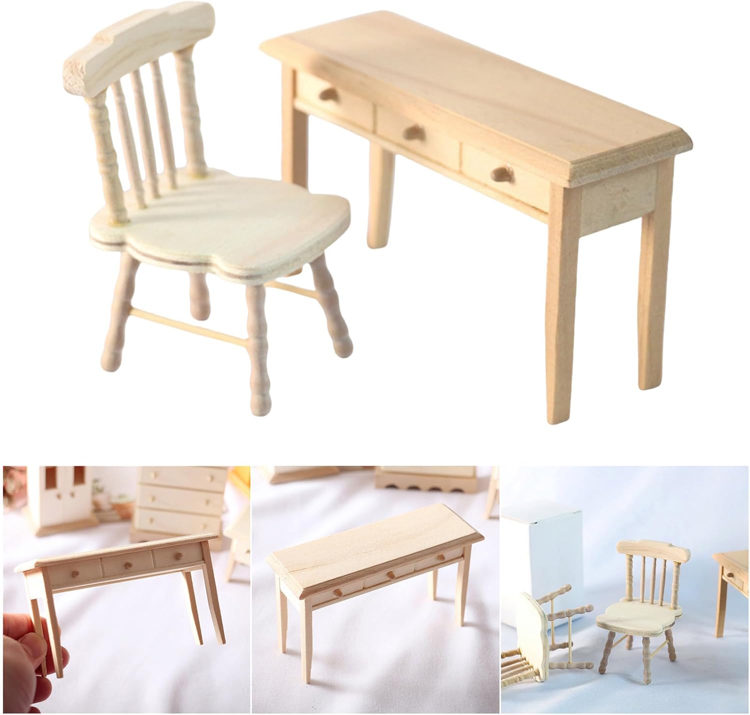 In legno massello non verniciato, questo set di sedie e scrivania in miniatura presenta un design classico senza tempo con venature del legno naturale, per mobili per la casa delle bambole e accessori per bambole Le superfici in legno grezzo sono meticolosamente levigate per la pittura e la personalizzazione per stimolare la creatività nei decoratori di bambini Questo set da scrivania in legno combina durata con un aspetto realistico, rendendolo una grande aggiunta a qualsiasi configurazione della casa delle bambole o ambiente di apprendimento creativo Progettato per bambini e adulti, appassionati di casa delle bambole e collezionisti di case delle bambole alla ricerca di accessori per la casa delle bambole in legno per giochi fantasiosi e espressione creativa Migliora mondi in miniatura come mobili per la casa delle bambole, scena di progetto o funge da giocattolo educativo per lo sviluppo manuale di stanze da gioco domestiche