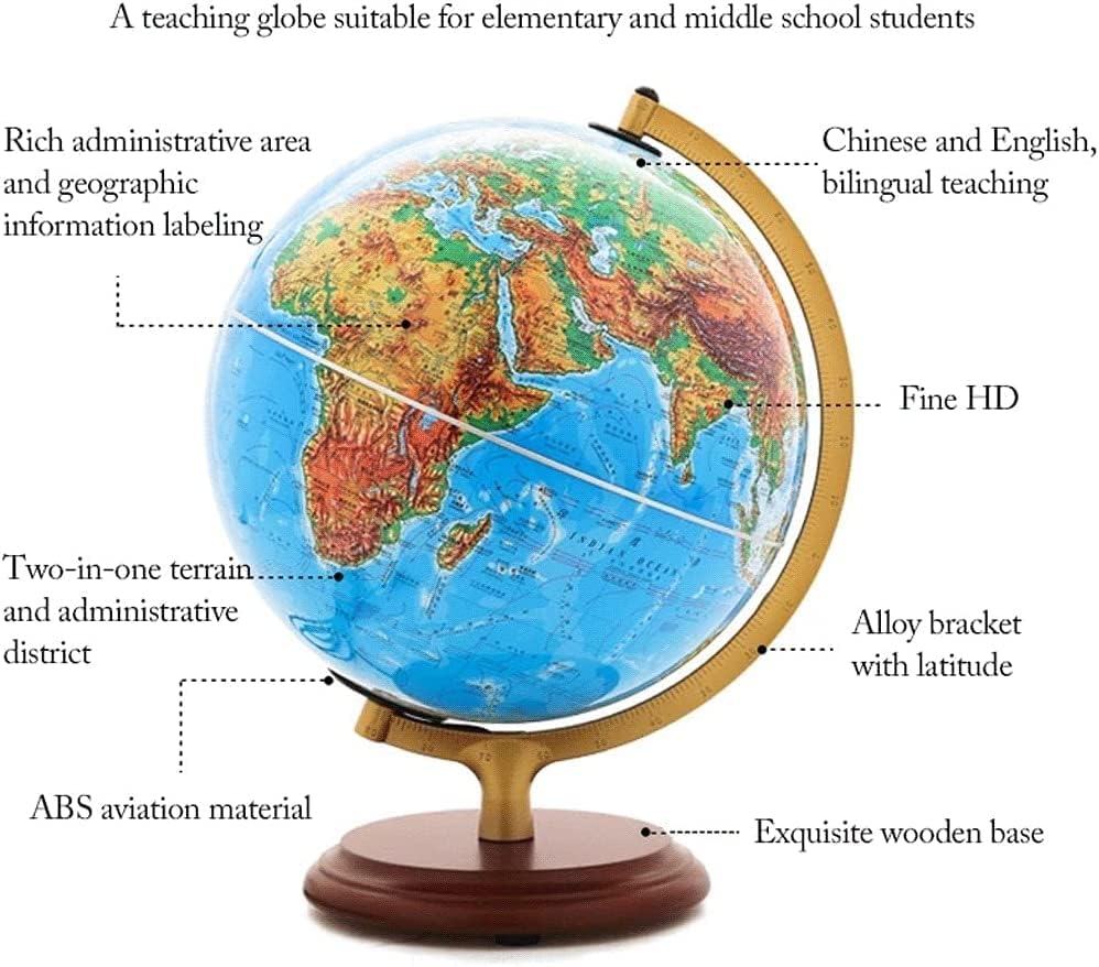 Doppio schermo unico: quando le luci sono spente, il terreno, le pianure e le montagne sono chiari a colpo d'occhio; quando le luci sono accese, vengono visualizzate le regioni politiche del mondo e i diversi paesi mostrano colori diversi. La sfera è luminosa e brillante, rendendo la notte pura e bella! STABILE E DUREVOLE: il globo luminoso di facile lettura con supporto in legno è realizzato in resistente plastica ABS liscia e può essere facilmente ruotato con le dita. Nuovo aggiornamento: le luci LED sono più morbide e proteggono meglio la vista. NOTA: il cavo dati è incluso, ma la spina di alimentazione non è inclusa. Globo luminoso 2 in 1: questo globo luminoso con supporto non solo ti fornisce una mappa del mondo completa, ma migliora anche le tue capacità geografiche. Puoi anche accendere la luce per trasformarlo in una bellissima sfera luminosa che può essere utilizzata come lampada da scrivania o come studio notturno. Incoraggia l'apprendimento e la scoperta: i bambini possono esplorare il mondo, compresi continenti e paesi, in dettagli colorati e facili da leggere. Questa Terra è uno dei migliori giocattoli di conoscenza, puzzle di QI o giocattoli educativi per imparare a conoscere il mondo.