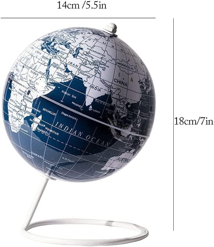 ELEGANZA CLASSICA: un bellissimo e accattivante mappamondo con curve e basi eleganti, ideale per arredare la casa e l'ufficio con un look moderno ed elegante, oppure da abbinare al colore dell'ambiente scelto. Classico e durevole: forma retrò semplice, stampa con vernice metallica e staffa in metallo laccato, rotazione di 360 gradi, rotazione fluida e scorrevole. Moderno globo in metallo con supporto: il nostro globo ha un diametro di 14 cm/5,5" e può essere ruotato su un robusto supporto in metallo. Fatto a mano: questo globo è fatto a mano per un look vintage. È il globo perfetto per mostrare i tuoi viaggi in ufficio o per aggiungere stile al tuo soggiorno! Il miglior regalo Globe: il globo perfetto per gli amici che amano viaggiare. Questo globo è la decorazione perfetta per la tua casa o la tua scrivania.