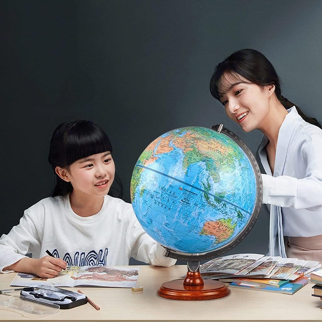 Ultimo globo: questo classico globo retrò presenta gli ultimi confini geografici, nonché i più recenti punti di riferimento geografici, confini e caratteristiche del terreno. Classico antico globo: base in legno e struttura in metallo anti-bronzo, perfetto per l'arredamento di casa e ufficio (vintage) MATERIALE DI ALTA QUALITÀ: Realizzato ad alto impatto con base in legno. Dimensioni: sfera da 12,5 pollici di diametro, 16,9 pollici di altezza; Globo da tavolo decorativo con mappa del mondo blu, globo rotante con geografia terrestre, base in legno vintage: stile vintage in legno marrone anticato, adatto a tutti gli arredi per la casa, soggiorno, ufficio, studio, bagno e comodino PERFETTAMENTE PRATICO: le tonalità di alta qualità e le basi di alta qualità aggiungono classe a qualsiasi stanza, e lo stile retrò invecchiato è perfetto per tutti gli arredamenti per la casa, soggiorni, uffici, tane, bagni, comodini e altro ancora.