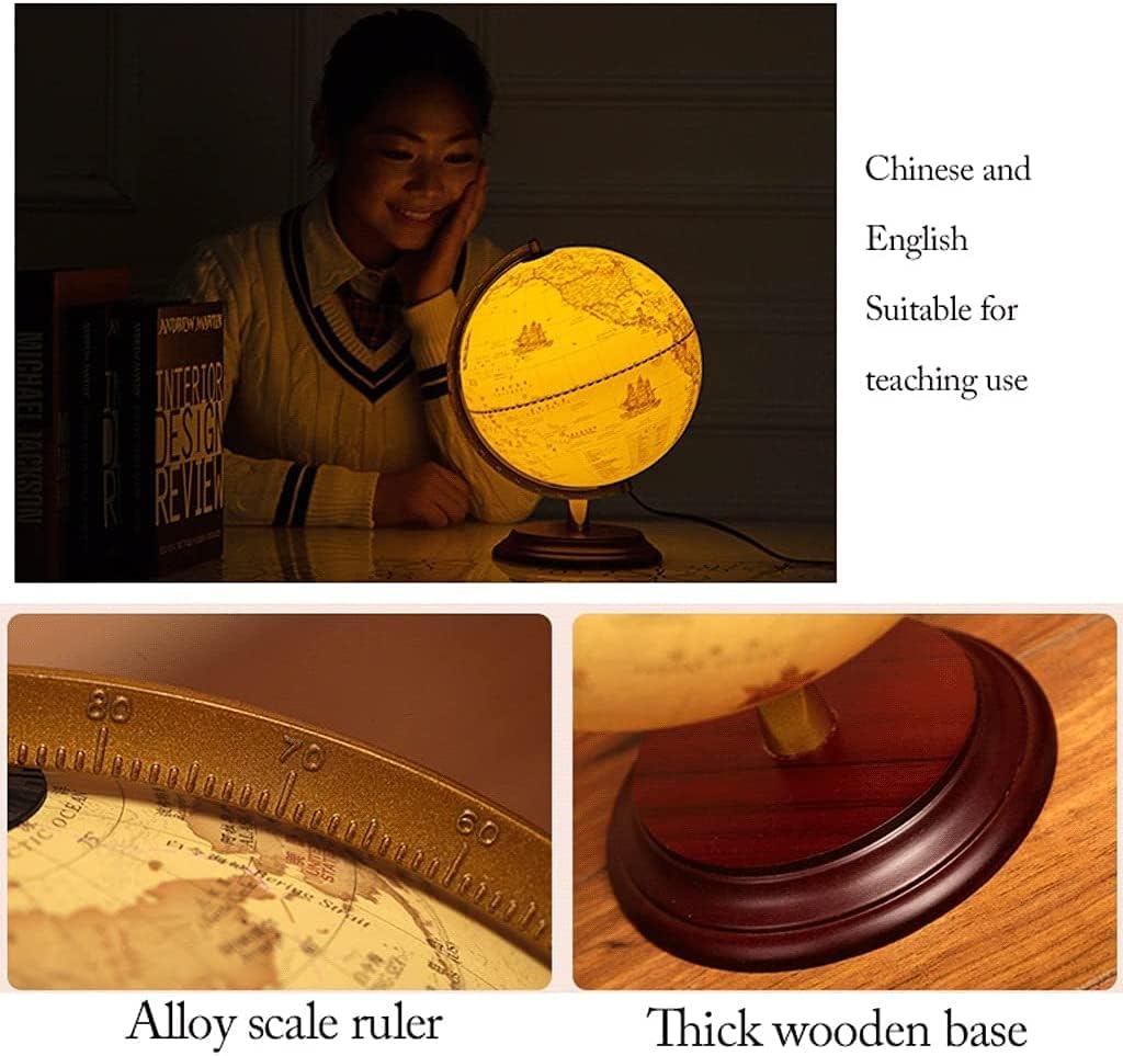 Ruota a 360 ° con la scala: staffa per bilancia in metallo + fondamenta in legno, alta precisione, solidità e durata e più comodo da imparare Design 2 in 1: l'uso di lampade a LED a risparmio energetico morbide può essere sostituito di notte e la staffa del righello della scala in lega ha una scala di latitudine per cogliere la posizione geografica in qualsiasi momento. Design per la protezione degli occhi: la spessa base in legno ha un classico bellissimo globo, che può essere utilizzato come lampade da tavolo. Le luci sono morbide e possono decorare la tua camera da letto invece di essere luci LED abbaglianti e caotiche, a risparmio energetico ed efficienti. HD retrò: stampa HD in cinese e inglese, i dettagli della mappa sono altamente recuperati e la doppia lingua cinese e inglese è un confronto. Imparare la geografia non è più difficile. Significato interessante ed educativo: la nostra Terra ha gli ultimi dettagli, incoraggiando i bambini curiosi a esplorare il mondo scientifico con le mani e gli occhi.
