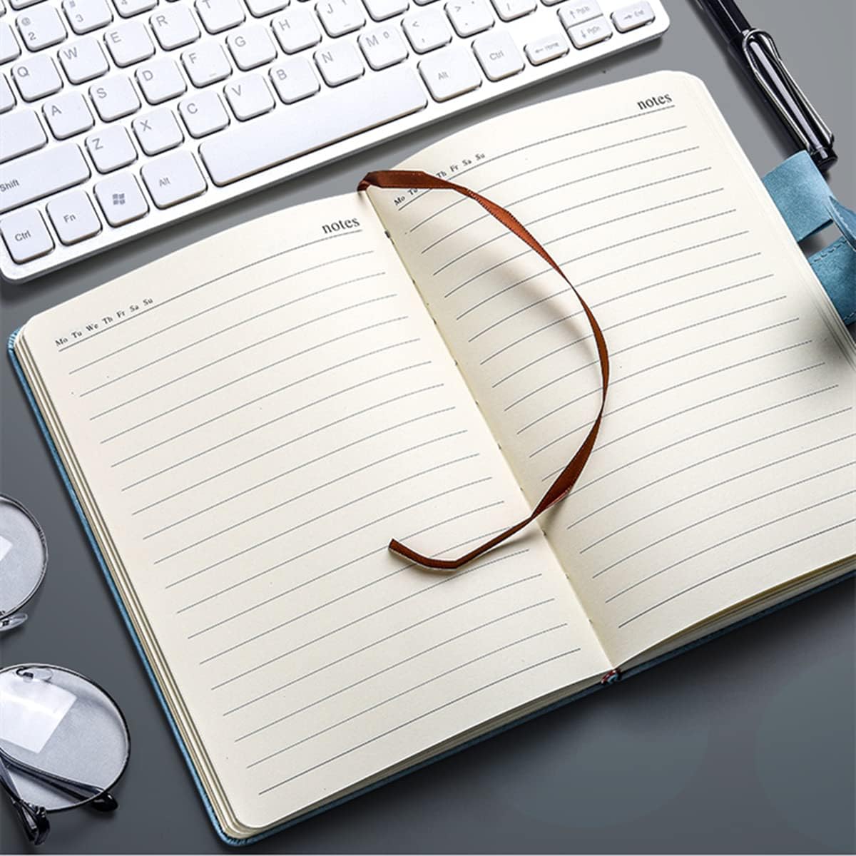 Taccuino a righe classico: questo taccuino/diario offre molto spazio per appunti, elenchi e altro con una copertina elegante e raffinata. Questo taccuino/diario a righe è adatto alla maggior parte dei tipi di penne, come penne a sfera, penne a pennello, penne a punta fine, penne glitterate, ecc. Un'ottima scelta per l'uso quotidiano a scuola, in ufficio o a casa. BLOCCO NOTE IN CARTA SPESSA PREMIUM: questo diario ha 360 pagine (180 fogli) con carta a righe di alta qualità, spessa e tagliata uniformemente e in grado di resistere alle immagini fantasma e alle sbavature dell'inchiostro. La carta biancastra, priva di acidi, protegge dai danni della luce e dell'aria e protegge gli occhi dalle irritazioni. Larghezza della linea: 10 mm. Dimensioni perfette (21 x 14 cm) da trasportare o mettere in borsa. Design elegante: in questo taccuino/diario a righe è presente un nastro elastico segnalibro. Inoltre, il resistente taccuino professionale con copertina rigida proteggerà il tuo diario per anni e sarà facile da appiattire per scrivere e leggere comodamente. Ottima scelta: questo taccuino è perfetto come taccuino da viaggio, taccuino da lavoro e anche un fantastico regalo di compleanno, Halloween, Natale o ritorno al college per te, la tua famiglia e i tuoi amici. È ottimo come materiale universitario, materiale per ufficio, materiale artistico per scrittori, partner commerciali, compagni di classe, educatori e quaderno multiuso per ufficio, casa, lavoro, scuola, classe, disegni artistici, insegnamento, studio e forniture per la chiesa. Pelle sintetica: la finitura testurizzata dell'esterno in pelle sintetica è perfetta da tenere in mano, proprio come la pelle di un bambino. Copertura alla moda ma resistente che si adatta ai movimenti del corpo senza danni.