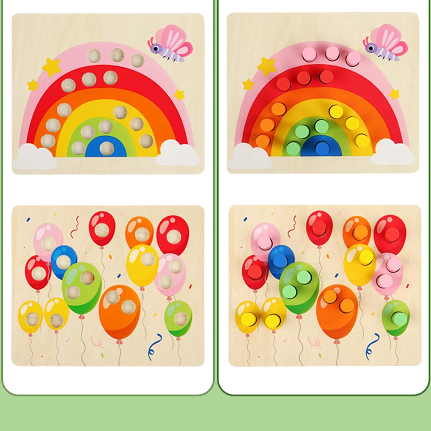 Potenziatore Cromatico: Migliora significativamente la percezione dei colori con molteplici tonalità, contribuendo sviluppo sensoriale visivo del bambino Gioco Sicuro: Costruzione resistente in legno di qualità, di bordi taglienti o imperfezioni, per ore di attività sicure con i colori Relazioni più solide: Giocare con attività di ordinamento colori incoraggia l'interazione e il dialogo tra genitori e figli, offrendo un modo gratificante per consolidare i legami familiari e creare momenti di qualità Rafforza Competenze: Stimola lo sviluppo a flessibilità e dita, e capacità motorie fini, 'attitudine alla risoluzione problemi, a coordinazione occhio-mano e a concentrazione persistente attraverso attività di classificazione cromatica interattiva Scelta Intelligente: Un'ottima idea regalo per i tuoi bambini. Sia per Pasqua, Giornata dei Bambini, Capodanno, compleanni o Natale, questi giocattoli per ordinare i colori offrono ore di attività benefiche per la coordinazione occhio-mano.