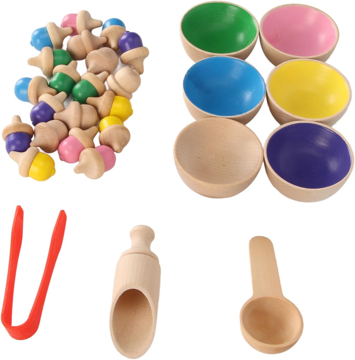 [Vantaggi educativi] Promozione delle capacità di rilevamento dei colori e classificazione con il nostro colorato giocattolo di classificazione e la promozione dello sviluppo cognitivo nei bambini. [Uso pratico] Sviluppare sottili capacità motorie e coordinamento della mano-eo con cucchiai e pinzette contenute nel set e includono bambini nell'apprendimento interattivo. [Design colorato] Goditi le ghiande animate in diversi colori che aiutano a imparare a riconoscere e classificare gli oggetti in base al colore e migliorare la percezione visiva. [Easy Organization] Mantieni il tempo di gioco correttamente e chiaramente con il pratico sacco di stoccaggio, con il quale la pulizia viene eseguita rapidamente e facilmente in base alle sessioni di gioco. [Materiali premium] realizzati in legno composto, i nostri ecoRN che contano i giocattoli garantiscono durata e sicurezza per infinite ore di divertimento dell'istruzione.