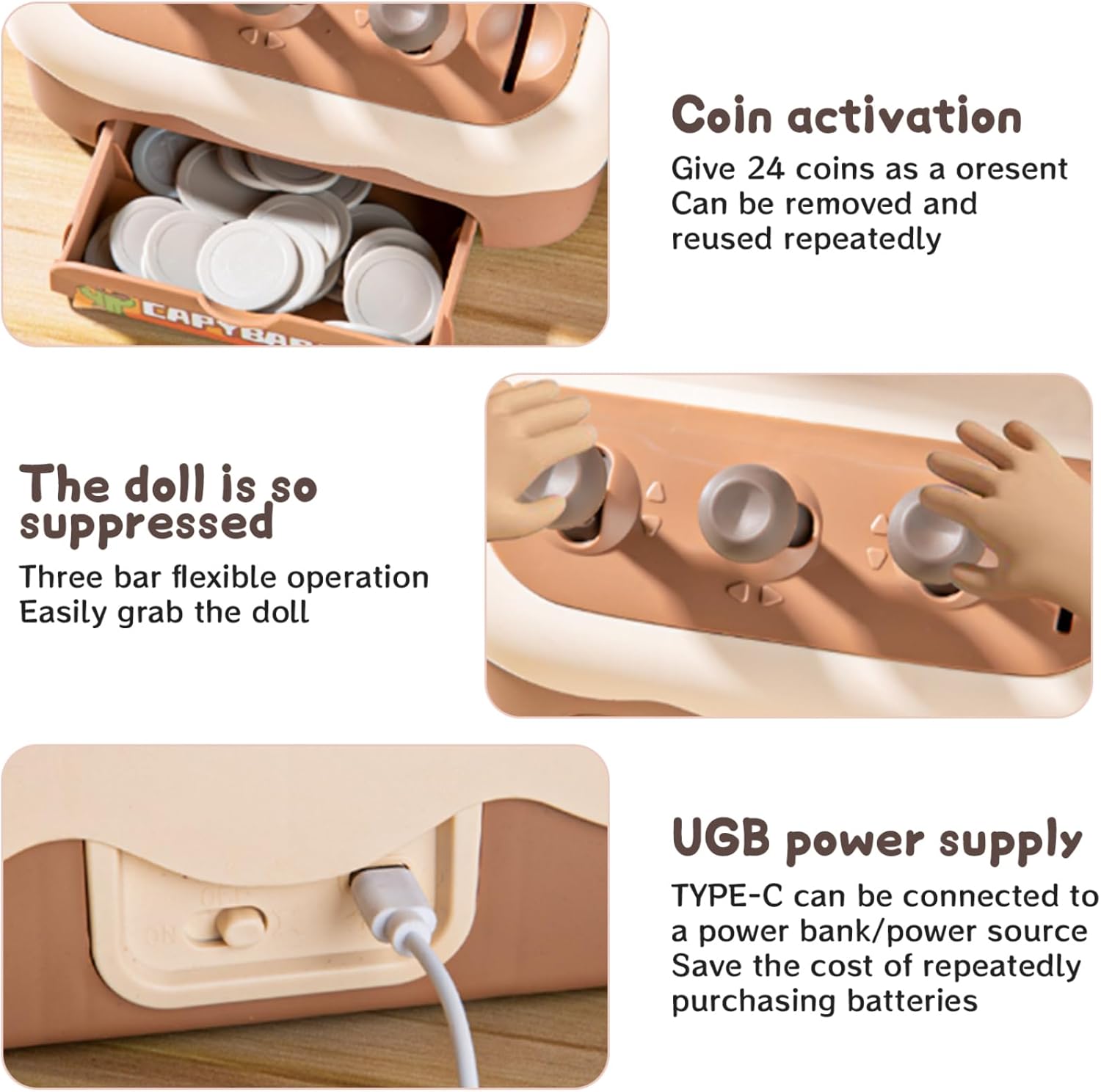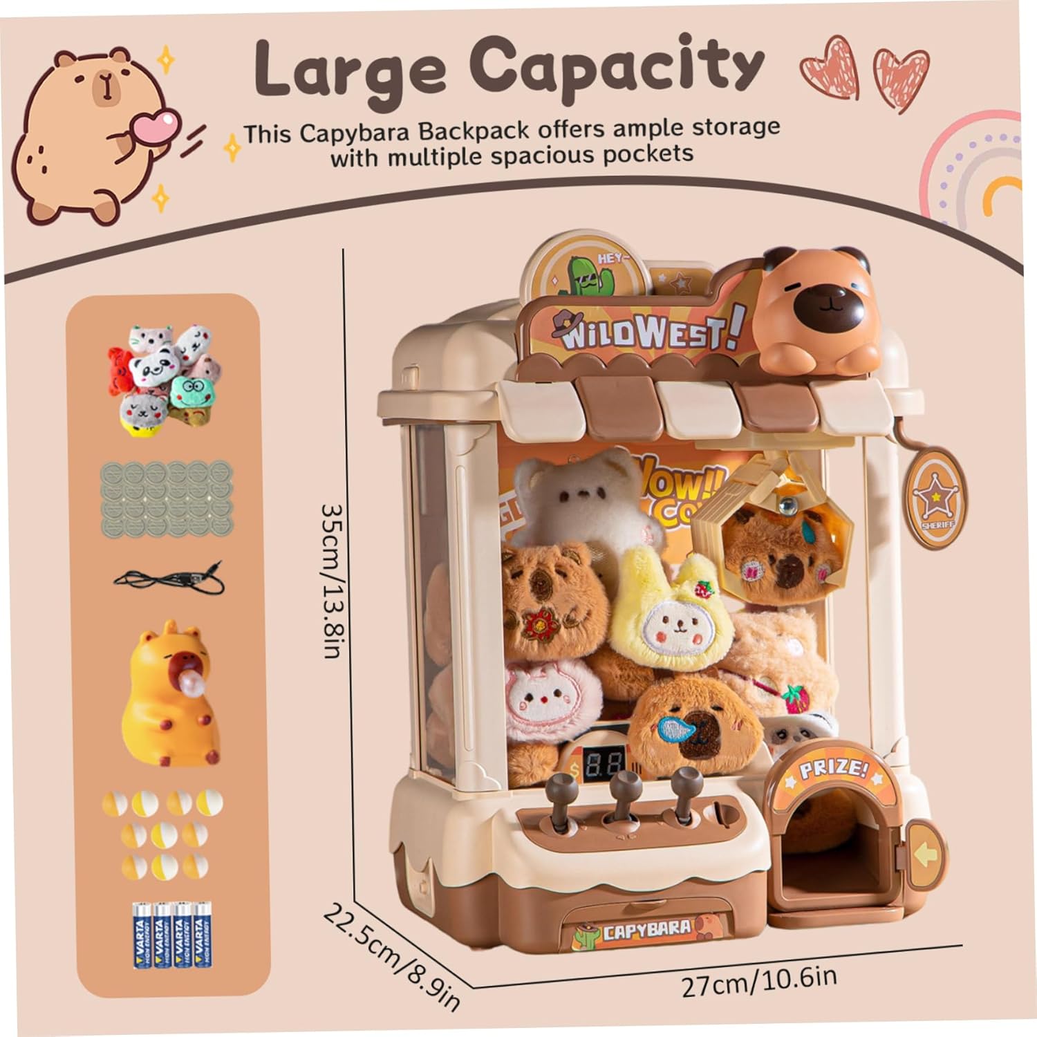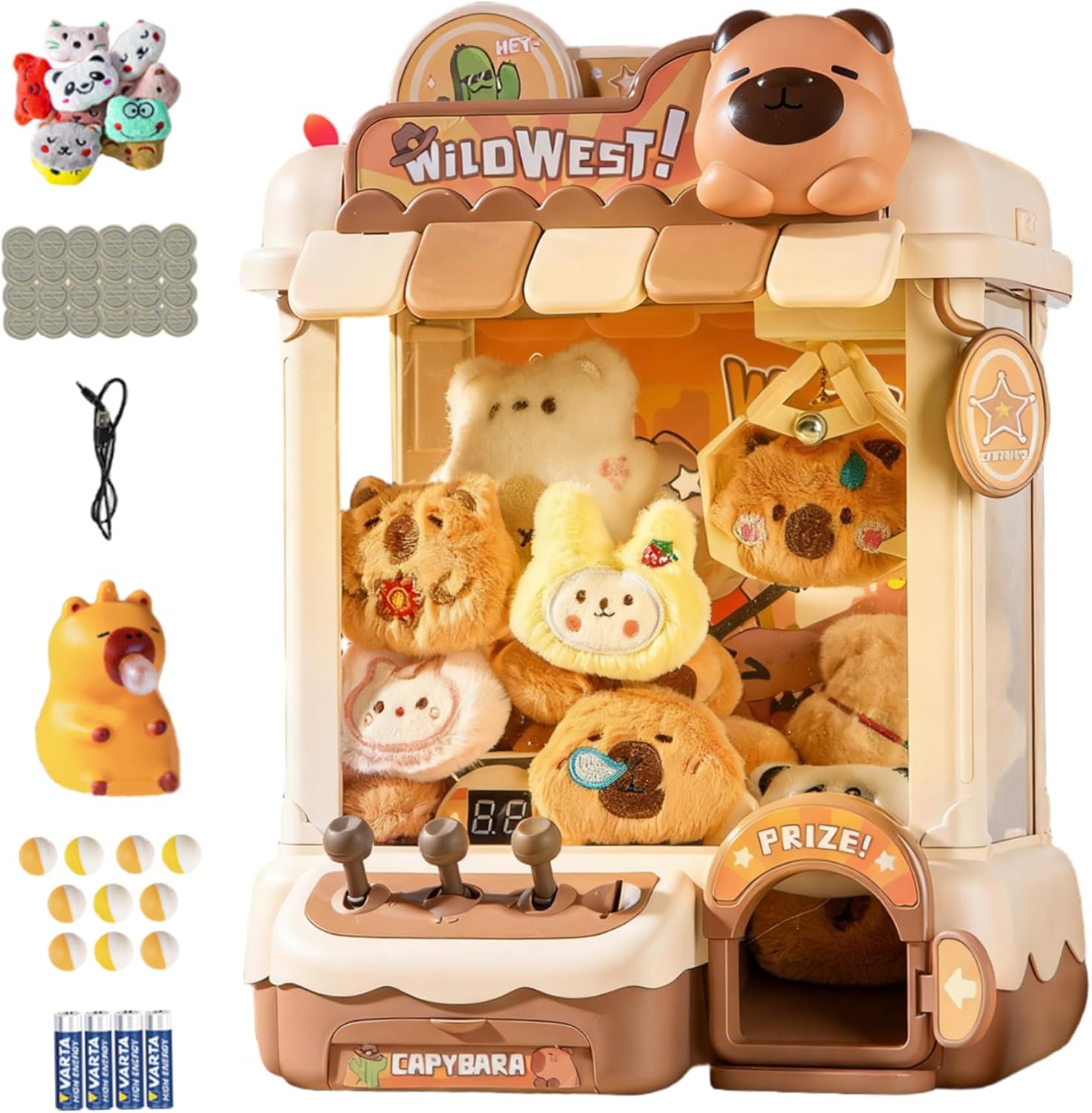 Sicuro e adatto ai bambini: realizzato con materiali non tossici con bordi lisci, garantendo un uso sicuro per i bambini a feste natalizie o compleanni Sviluppo di abilità e divertimento: migliora il coordinamento degli occhi e le capacità di risoluzione dei problemi offrendo intrattenimento, rendendolo una perfetta macchina per i giocattoli educativi per i bambini Design compatto e carino: l'adorabile Mini Claw Machine a tema Capybara aggiunge fascino a qualsiasi stanza, perfetta per le camere da letto, le feste o eventi attuali per bambini Dual Power Think: presentano funzionamento USB e Batteria, garantendo un posizionamento flessibile ovunque per il gioco continuo e il divertimento Set pronto per il gioco: include 10 bambole, 10 uova colorate e 24 monete, fornendo ore di gioco coinvolgente subito