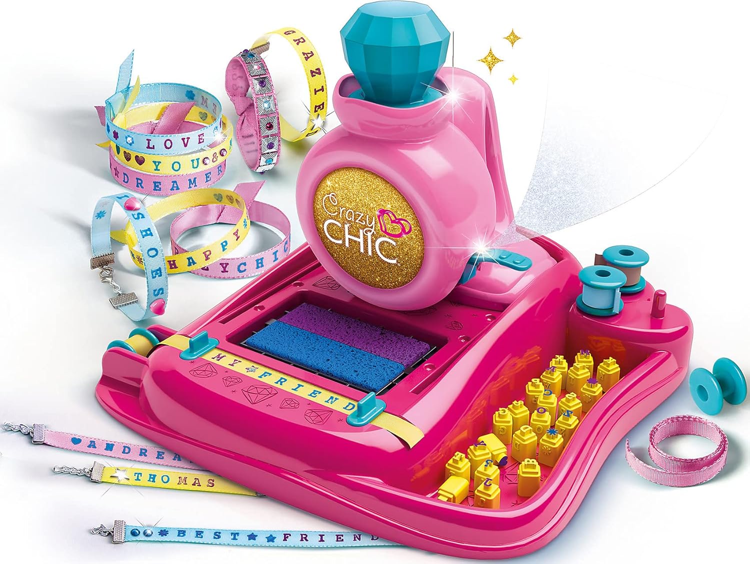 Progetta i tuoi gioielli alla moda: con questo set puoi creare in un batter d'occhio bellissimi braccialetti, che grazie alla stampa di singole lettere e messaggi diventano un'attrazione molto speciale. Cattura l'attenzione personalizzata: utilizzando la speciale tecnica di goffratura, i gioielli realizzati vengono decorati con lettere in modo che le emozioni possano essere espresse, le iniziali possano essere incise o possano essere realizzati braccialetti dell'amicizia unici. Fornitura: 1 braccialetto Crazy Chic Emotion, set di gioielli colorati per bambini dai 7 anni di Clementoni Facile e veloce: le piccole lettere vengono inserite nella cornice come se fosse stampata, pressate nell'inchiostro colorato e poi trasferite sul braccialetto: il braccialetto Crazy Chic è pronto. Possibilità illimitate: il giocattolo contiene una varietà di nastri colorati e accessori con cui possono essere creati gioielli per la tua migliore amica, mamma, sorella o nonna in tutti i colori e forme