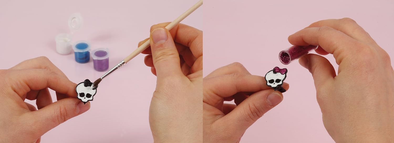 Un gioco super glam per realizzare originali e mostruosi orecchini in vero stile Monster High. Il kit contiene tante icone da personalizzare con adesivi, glitter, nastrini e tanti accessori per creare orecchini davvero unici. Grazie al pratico gancetto a clip, si potranno togliere e indossare gli orecchini in totale sicurezza.