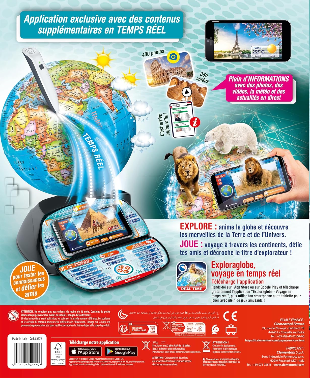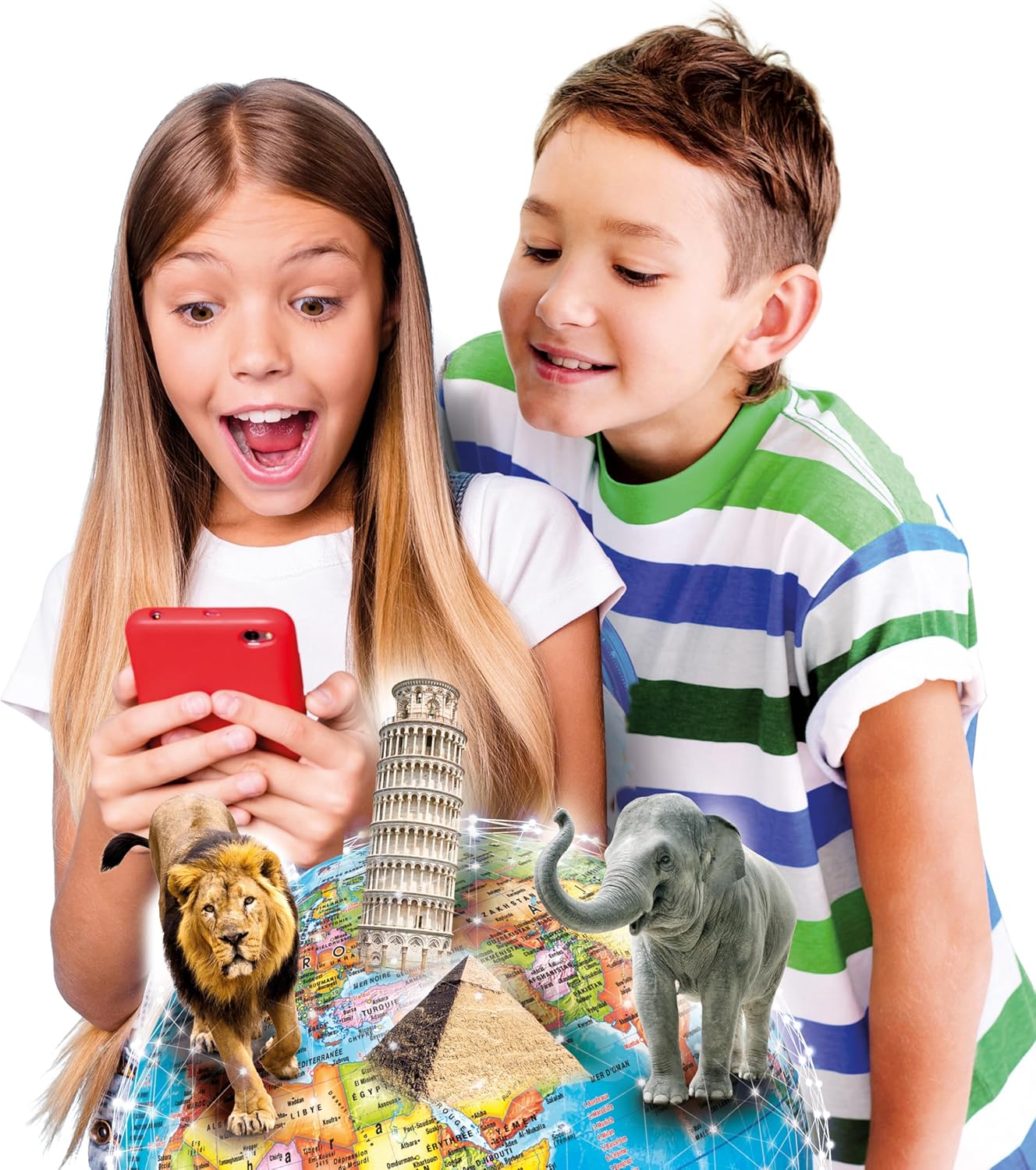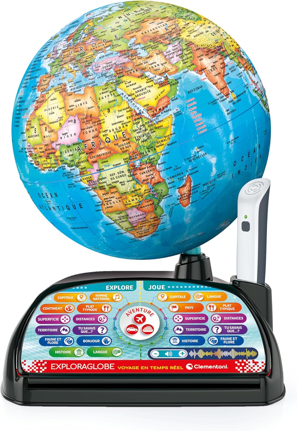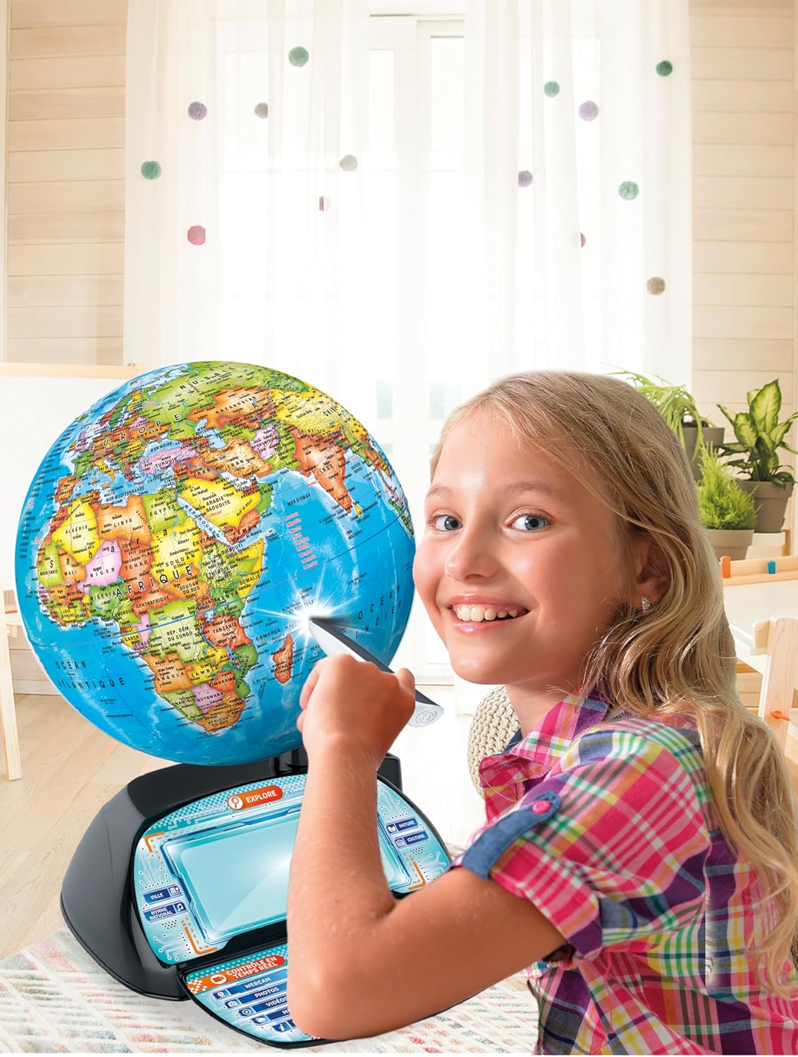 Globo interattivo: Scopri il mondo a modo tuo! Questo globo interattivo ti porta in ogni angolo del pianeta. Con la sua penna Bluetooth, punta un paese e accede a informazioni affascinanti: un viaggio educativo e giocoso da 7 anni. Sviluppa la tua conoscenza geografica: Più di 5 ore di informazioni a portata di mano! Questo globo ti offre una vasta gamma di informazioni sui paesi di tutto il mondo. Capitale, clima, monumenti... Impara tutto quello che vuoi sapere divertendoti. Tre modalità di gioco per variare i piaceri! Questo globo interattivo offre una moltitudine di attività per scoprire i paesi del mondo in modo divertente e personalizzato. Una penna collegata per un'esperienza unica. Grazie alla sua penna Bluetooth, questo globo ti consente di accedere a contenuti arricchiti in tempo reale: foto, video, meteo, ecc. Impara divertendoti. A Natale o per un compleanno, fai viaggiare tuo figlio con questo globo interattivo. Un'idea regalo che esce dall'ordinario e farà sensazione.
