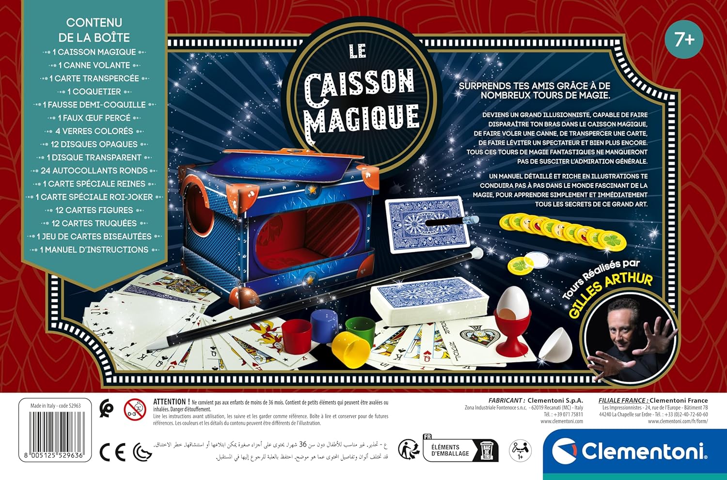 Confezione completa di magia – Il bambino scopre 80 trucchi di magia facili da eseguire, per iniziare con fiducia nell'affascinante universo degli illusionisti. TOUR SPETTACOLARE INCLUSO: il piccolo mago può far sparire il braccio in un cassone aperto, un effetto impressionante per stupire il pubblico. ACCESSORI DE MAGICIEN – La confezione contiene bacchetta magica, corde, carte, e molti oggetti per realizzare i trucchi più iconici. APPRENDIMENTO LUDICO E PROGRESSIVO – Il manuale illustrato guida il bambino passo dopo passo per imparare a manipolare, presentare e riuscire con sicurezza i suoi trucchi. SPETTACOLO, GIOCO E FIDUCIA – Questo cofanetto sviluppa concentrazione, destrezza, messa in scena e fiducia in se stessi attraverso il divertimento del gioco magico.