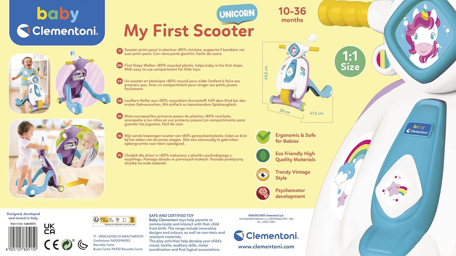 GIOCO PRIMA INFANZIA: Un simpatico scooter a tema unicorno in materiale 100% riciclato, per saltare a bordo del divertimento e muovere i primi passi nel mondo! GIOCO PRIMI PASSI: Un primi passi a forma di scooter per favorire lo sviluppo della motricità dei più piccoli, la coordinazione e la percezione dello spazio CARATTERISTICHE: Con un vano porta oggetti per portare con sé piccoli "bagagli" di viaggio DETTAGLI E TARGET: Un gioco primi passi consigliato per bambini a partire dai 9 mesi. 100% Made in Italy RISPETTO PER L'AMBIENTE: I giochi Play for future nascono con l'intento di trasmettere ai bambini il valore della sostenibilità e l'importanza del rispetto per l'ambiente