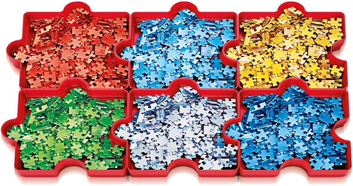 ACCESSORI PER PUZZLE: 6 vaschette organizer per puzzle, ideali per suddividere i tasselli per forma, colore, tipologia di pezzo, impilabili tra di loro per trasportare ovunque tutti i puzzle preferiti CARATTERISTICHE: 6 vaschette a forma di tessera impilabili e facilmente trasportabili, accessorio ideale per gli appassionati di puzzle che vogliono organizzare i tasselli dei puzzle preferiti COME UTILIZZARLO: inserire fino a 1000 tessere, suddivise per colore o per forma per facilitare la composizione del puzzle, da trasportare dove preferisci COSA CONTIENE: 6 vaschette made in Italy, organizer per puzzle salvaspazio e facilmente trasportabili, per contenere fino a 1000 tasselli ACCESSORI PUZZLE CLEMENTONI: il brand Clementoni offre puzzle di alta qualità, completi di accessori utili per un'esperienza di assemblaggio ottimale sia per adulti che per bambini in completo stile made in Italy