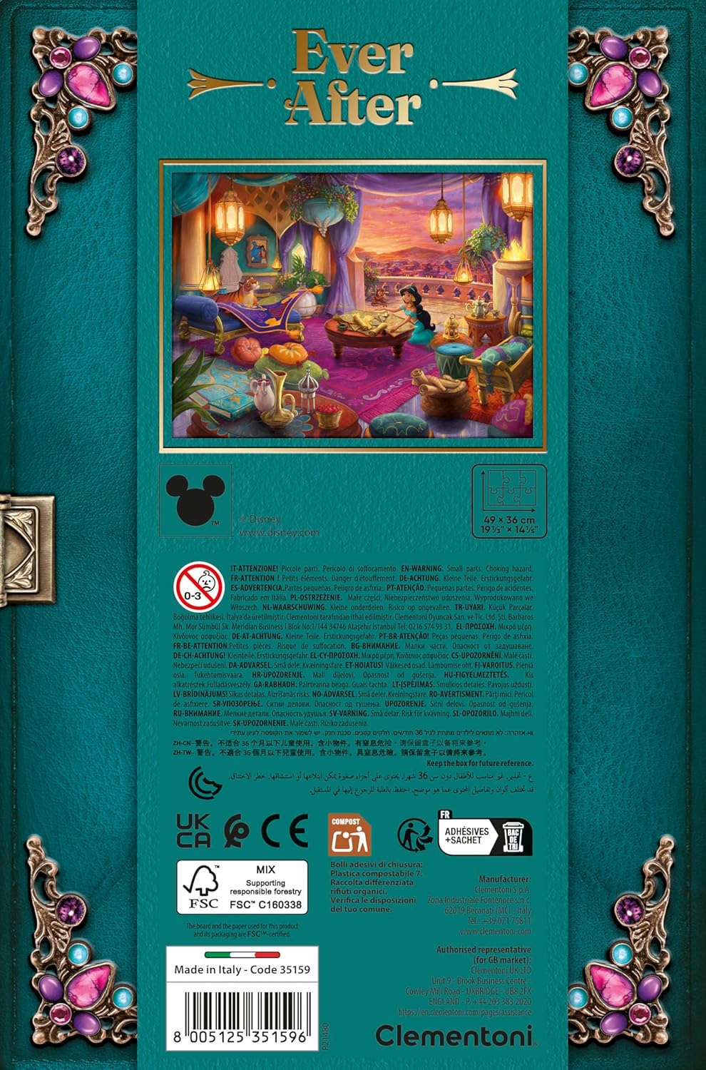 PUZZLE PER ADULTI: Puzzle da 500 pz a tema Jasmine, idea regalo per gli amanti delle principesse Disney, un’esperienza rilassante e coinvolgente che allena attenzione e memoria, pensato per adulti e ragazzi PER GLI APPASSIONATI DEI CARTONI: Ever After Collection mostra le principesse oltre la fiaba, Jasmine pianifica il viaggio tra mappe sul terrazzo di Agrabah al tramonto con Rajah, tappeto magico e lanterne, illustrazione curata per collezionisti COME GIOCARE: i puzzle Clementoni dedicati a Disney Princess stimolano logica e concentrazione con immagini della Ever After Collection da completare e collezionare; ogni pezzo allena memoria e intuizione per ore di divertimento educativo e rilassante COSA CONTIENE: Puzzle 500 pezzi Made in Italy, immagine 49 × 36 cm con stampa di qualità e pezzi molto colorati, incastri accurati, box decorata e colorata con immagine personalizzata, design elegante perfetto da esporre in libreria e collezionare CLEMENTONI - EVER AFTER COLLECTION: gamma di puzzle per adulti con immagini collezionabili Disney Princess, illustrazioni artistiche, qualità e divertimento in design curati, confezione-libro decorato con dettagli di pregio, da collezionare ed esporre