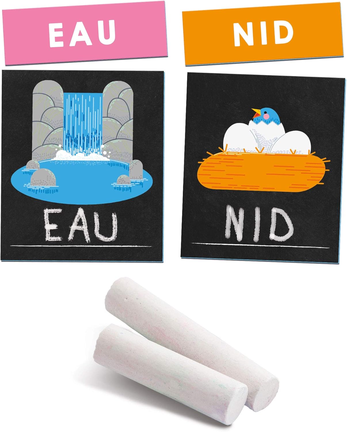Scrivi, cancella, riscrivi... Ogni attività è un'occasione per brillare I bambini impareranno a scrivere con questo set di 10 lavagne da disegno e 10 cartoncini con parole corrispondenti alle immagini. Con i gessetti e la spugna, i bambini potranno scrivere e giocare a volontà. Fabbricato in Europa.