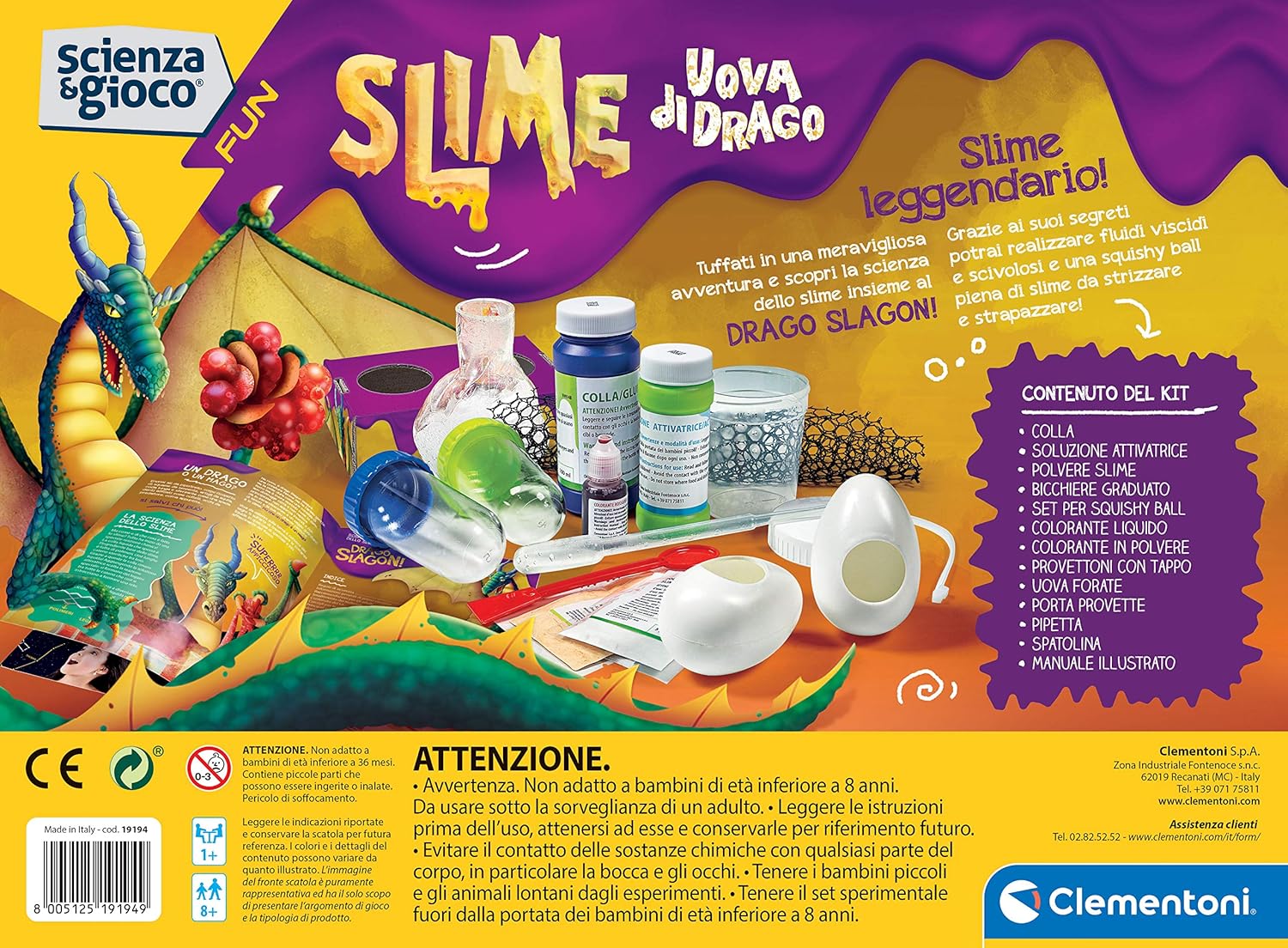 SCIENZA E GIOCO FUN: Un ricco laboratorio scientifico per scoprire i segreti della chimica e creare gli slime divertenti con il gioco "Slime Uova di Drago" CONTENUTO DEL GIOCO: Questo kit slime contiene coloranti, ingredienti speciali, accessori e una ricca dotazione di strumenti da laboratorio per creare slime davvero sorprendenti; Il manuale incluso spiega tutte le fasi della sperimentazione e guida i bambini con un linguaggio semplice e comprensibile FABBRICA SLIME: Sarà divertentissimo crear slime super viscidi, slime squishy e palline antistress e continuare a giocare con gli esperimenti realizzati GIOCO SICURO e DIVERTENTE: Sicuri, completamente atossici e super divertenti, gli slime realizzati possono essere manipolati in totale sicurezza IDEA REGALO: Un laboratorio slime per avvicinare i bambini alla chimica in modo facile e divertente e un ottimo regalo per Natale, compleanno o qualsiasi altra occasione TARGET: Gioco scientifico bambini 8 anni+; Made in Italy