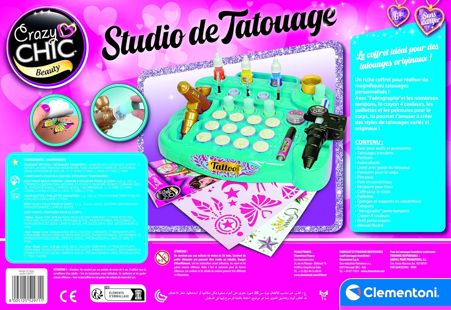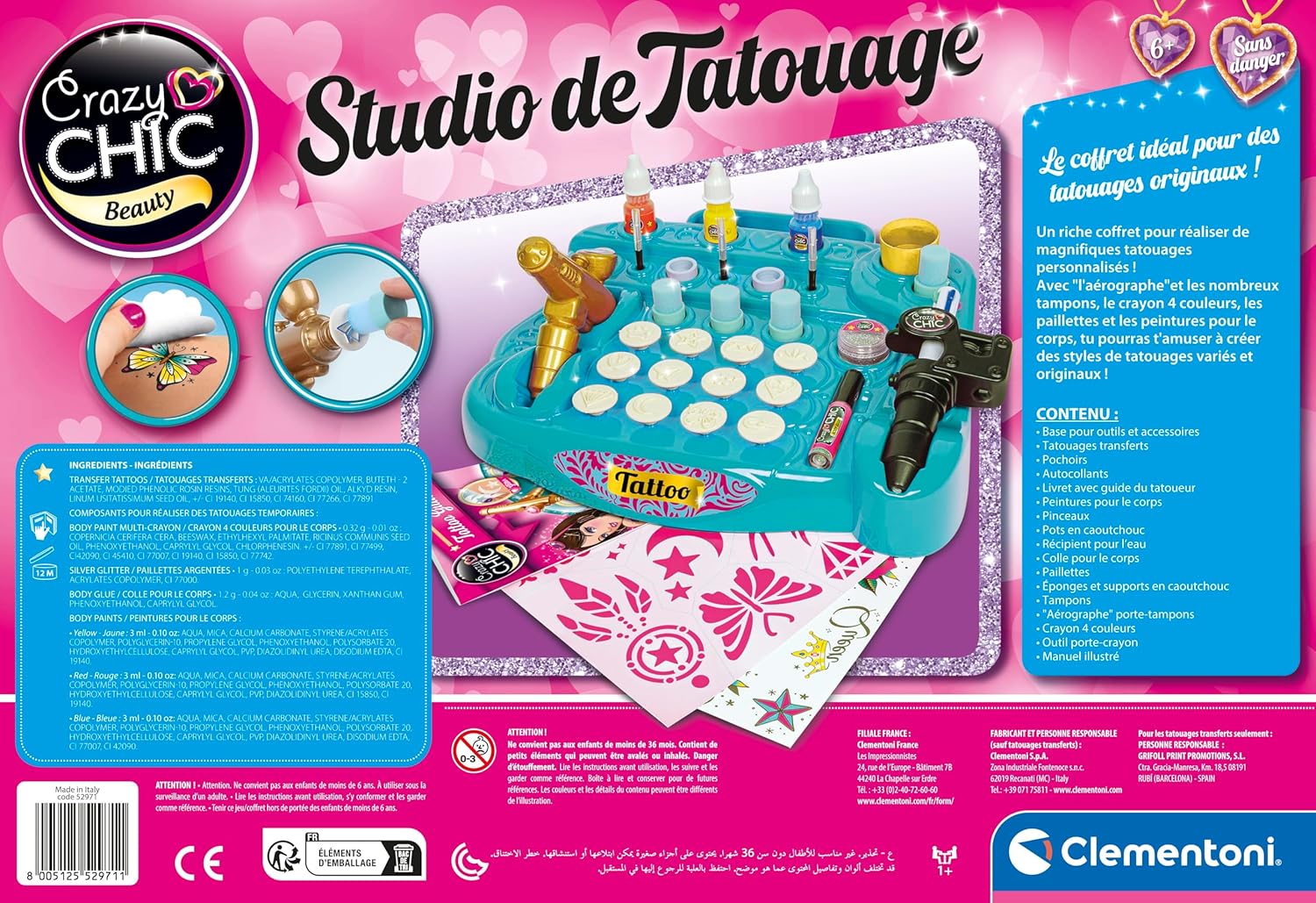 Crea tatuaggi unici: Liberi l'artista che sta in esso con la nostra speciale macchina del tatuaggio della pelle. Miniere colorate intercambiabili e vari stencil consentono di disegnare disegni personalizzati a mano libera o con precisione, stimolando l'immaginazione. Facile e divertente applicazione: grazie alla macchina tampone ergonomica e ai vari inchiostri colorati inclusi, realizzare tatuaggi temporanei diventa un gioco da ragazzi. Ottieni risultati vivaci e divertenti con facilità per ore di intrattenimento creativo. Kit ultra completo per artisti in erba: questo set è ricco di accessori per un'esperienza arricchita con tatuaggi a trasferimento rapido, vernici per il corpo per colorare disegni, spugne e applicatori. Tutto è pensato per una creazione senza limiti! Sviluppo della creatività e della destrezza: oltre il gioco, questo set favorisce l'espressione artistica e le capacità motorie. Il libro di disegni e consigli incluso guida i bambini, offrendo loro ispirazione e tecniche per progettare i propri capolavori effimeri. Sicurezza e divertimento garantiti: progettato per la pelle, questo kit temporaneo per tatuaggi garantisce un intrattenimento sicuro e adatto ai bambini. Regala un regalo originale che combina gioco, arte e apprendimento, ideale per compleanni o momenti creativi a casa.