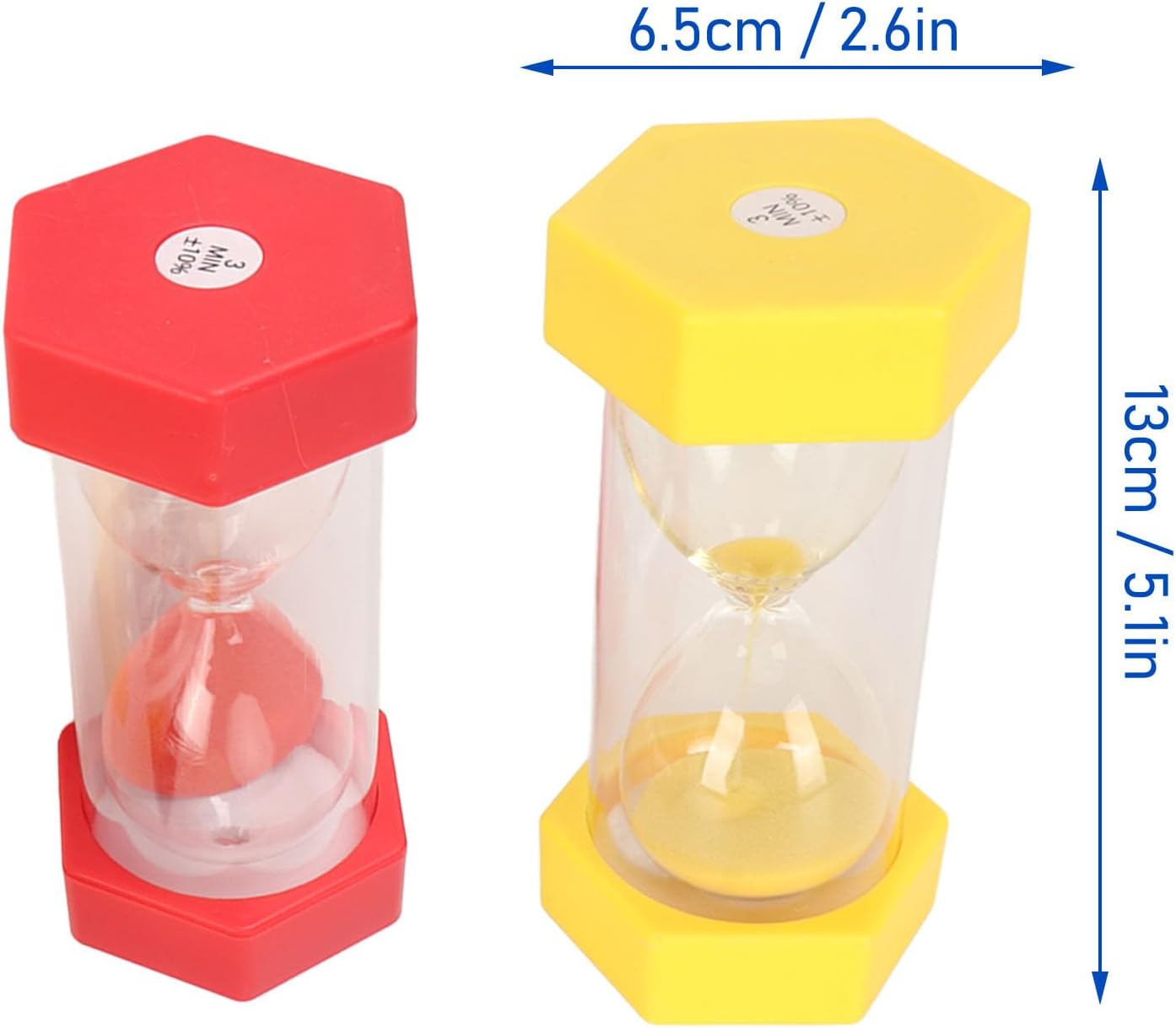 [Materiale plastico durevole]: il clessidra esagonale è realizzato in plastica robusta, con un coperchio che è duro e sicuro da usare per i bambini, fornendo tranquillità ai genitori. [Opzioni di colore vibranti]: con coperchi in diversi colori e sabbie corrispondenti all'interno, questa clessidra di 3 minuti è visivamente stimolante e coinvolgente per i bambini. [Migliora la gestione del tempo]: il timer di sabbia di 3 minuti di plastica funzionale aiuta i bambini a sviluppare capacità di gestione del tempo efficaci e un senso di tempismo. [Portatile e versatile]: l'orologio di sabbia di plastica è leggero e facile da trasportare, per una varietà di attività come lo studio, la cucina, i giochi e il rilassamento. [Design semplice e resistente]: il timer di sabbia di 3 minuti di facile utilizzo è costruito per durare, mantenendo la sua funzionalità anche con un uso ripetuto, garantendo la longevità con la sua costruzione in plastica.
