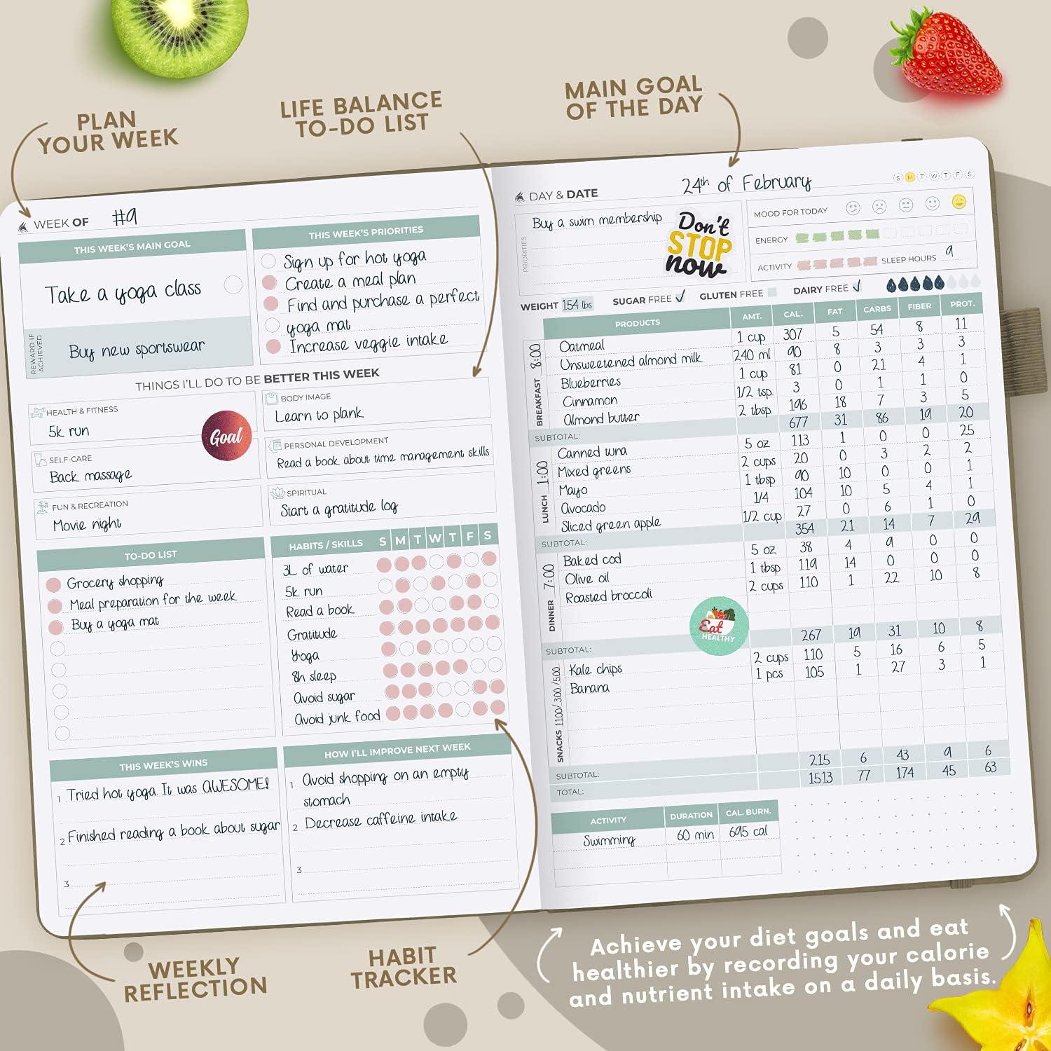 GARANZIA E RESI – Il Clever Fox Wellness Calendar è garantito che funzionerà, altrimenti sarai rimborsato – senza fare domande! Sostituiremo o rimborseremo il tuo diario di fitness e la tua agenda il più rapidamente possibile se riscontri problemi di qualità o non sei completamente soddisfatto del tuo tracker del benessere. Contattaci tramite messaggio Amazon per un rimborso senza problemi. ATTENZIONE: questa agenda è in inglese. SENTIRTI FORTE, PERDERE PESO E AVERE PIÙ ENERGIA – Questo quaderno utilizza tecniche di psicologia positiva per aiutarti a sentirti bene, controllare le tue abitudini di salute, perdere peso! Contiene una pagina degli obiettivi, calendari mensili, sezioni settimanali per l'impostazione degli obiettivi e il monitoraggio delle abitudini, registri alimentari giornalieri, una pagina dei risultati e pagine a griglia di punti per un ulteriore monitoraggio della salute. AQ7 6 MESI DI PIANIFICAZIONE DI SUCCESSO E SENZA DATA: A differenza di molti altri diari sul benessere, il Clever Fox Health Journal durerà 6 mesi di monitoraggio dei pasti e delle attività, il che è sufficiente non solo per ottenere i risultati desiderati, ma anche per cambiare la tua vita e fare progressi impressionanti! Il layout senza data del diario settimanale del benessere ti consente di iniziare a scrivere immediatamente, senza dover attendere una data specifica. QUALITÀ PREMIUM E GUIDA RAPIDA GRATUITA - Questo taccuino è un diario del benessere di qualità con layout colorati splendidamente stampati, una copertina rigida in morbida pelle PU in formato A5 e una carta spessa e resistente alla sbiadimento da 120 g/m² che resiste all'intenso monitoraggio quotidiano. Inoltre viene fornito con un portapenne elastico e fascia di chiusura, 3 segnalibri, una tasca per appunti, adesivi gratuiti e una guida rapida. GARANZIA E RESI - Il funzionamento del Calendario Clever Fox Wellness è garantito, altrimenti ti rimborseremo i tuoi soldi, senza fare domande! Sostituiremo o rimborseremo il tuo diario di fitness e la tua agenda il più rapidamente possibile se riscontri problemi di qualità o non sei completamente soddisfatto del tuo tracker del benessere. Contattaci tramite messaggio Amazon per un rimborso senza problemi.