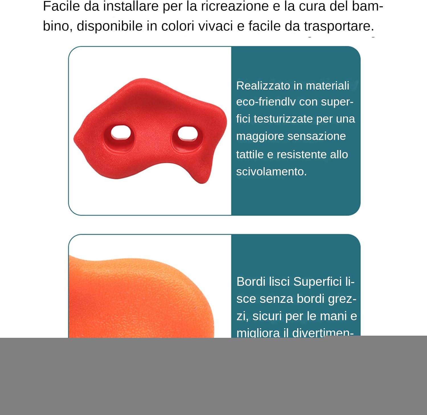 Easy to install with included mounting hardware: Comes with everything you need for fast and secure setup, whether you’re attaching to wood, beams, or tree trunks. The set is simple to rearrange or expand for growing skill levels and challenges. Encourages physical activity and creative play: A great way to promote balance, endurance, and motor skills, this ladder-style climbing system keeps kids engaged and active—an excellent alternative to screen time or sedentary activities. Versatile setup for indoor or outdoor use: Ideal for mounting on trees, playhouse walls, home ceilings, or gymnastic bars, this climbing set endless fun whether you’re indoors on rainy days or outside in the sun. Safe and secure grip for active play: Designed with textured, ergonomic shapes, the holds provide a reliable, slip-resistant grip for children or teens during climbing activities—encouraging confidence, coordination, and strength building. Durable climbing holds for outdoor adventure: Crafted from heavy-duty, weather-resistant , these climbing holds are built to withstand outdoor conditions year-round, making them perfect for trees, fences, backyard setups, and playgrounds.