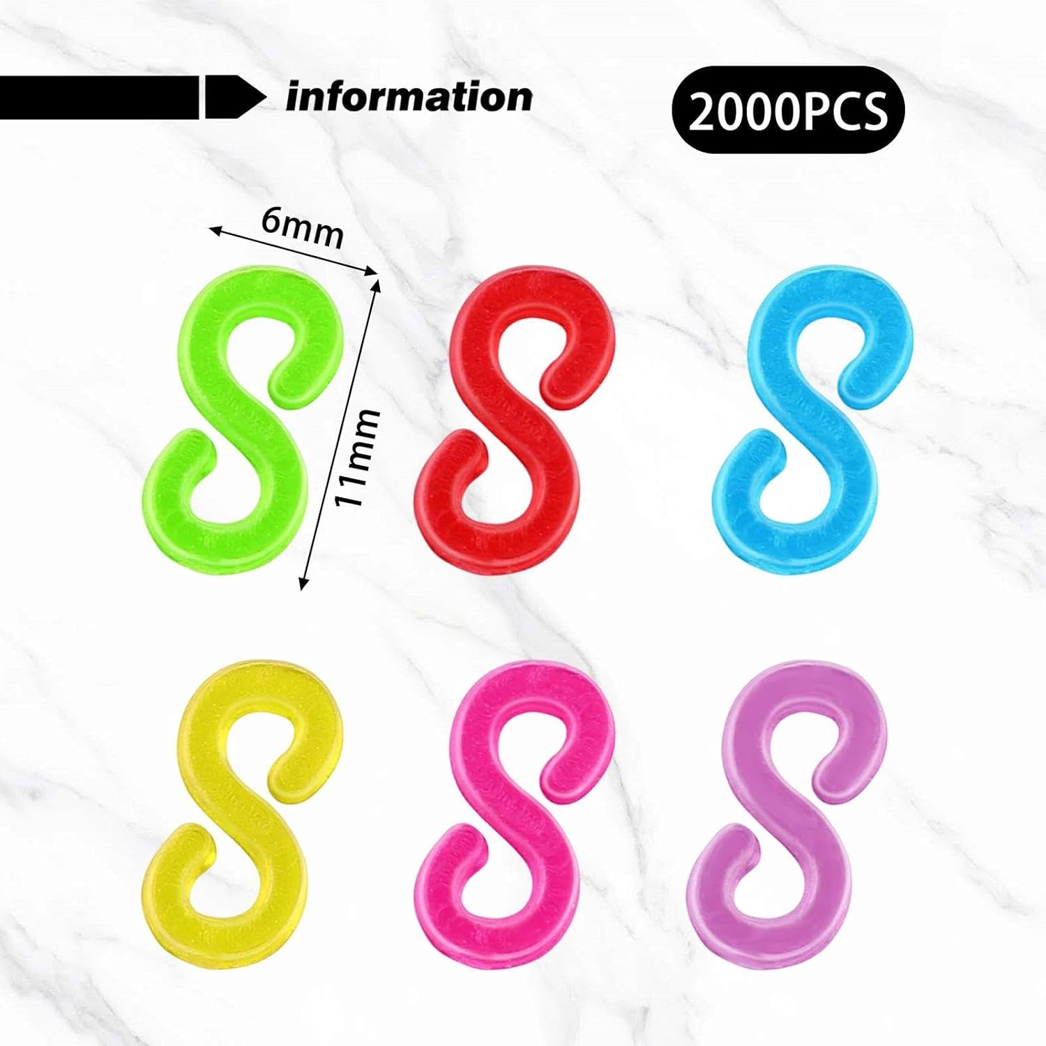 【Contenuto Del Prodotto】Riceverai 2.000 Pezzi Di Clip Colorate Trasparenti A Forma Di S Che Misurano 1, 1 X 0, 6 Cm, Adatte Per Intrecciare E Creare Gioielli Fai-Da-Te. 【Materiale Del Prodotto】 Questo Articolo È Realizzato In Gomma, La Sua Flessibilità E Durata Lo Rendono Ideale Per La Tessitura E La Creazione Di Gioielli. 【Design Colorato】 Questo Articolo Presenta Un Design Colorato Che Aumenta Il Divertimento E La Bellezza Dei Tuoi Braccialetti E Gioielli, Rendendoli Perfetti Per Vari Progetti Creativi Fatti A Mano. 【Ampia Applicazione】 Questo Articolo È Perfetto Per Realizzare Braccialetti, Portachiavi E Altri Gioielli Intrecciati Ed È Anche La Scelta Ideale Per Gli Appassionati Di Fai Da Te E Gli Hobbisti. Facile Da Usare: Queste Clip A Forma Di S Sono Facili Da Usare E Possono Collegare Cinturini Intrecciati E Gioielli Con Semplici Passaggi, Consentendoti Di Completare Facilmente Vari Progetti Artigianali.