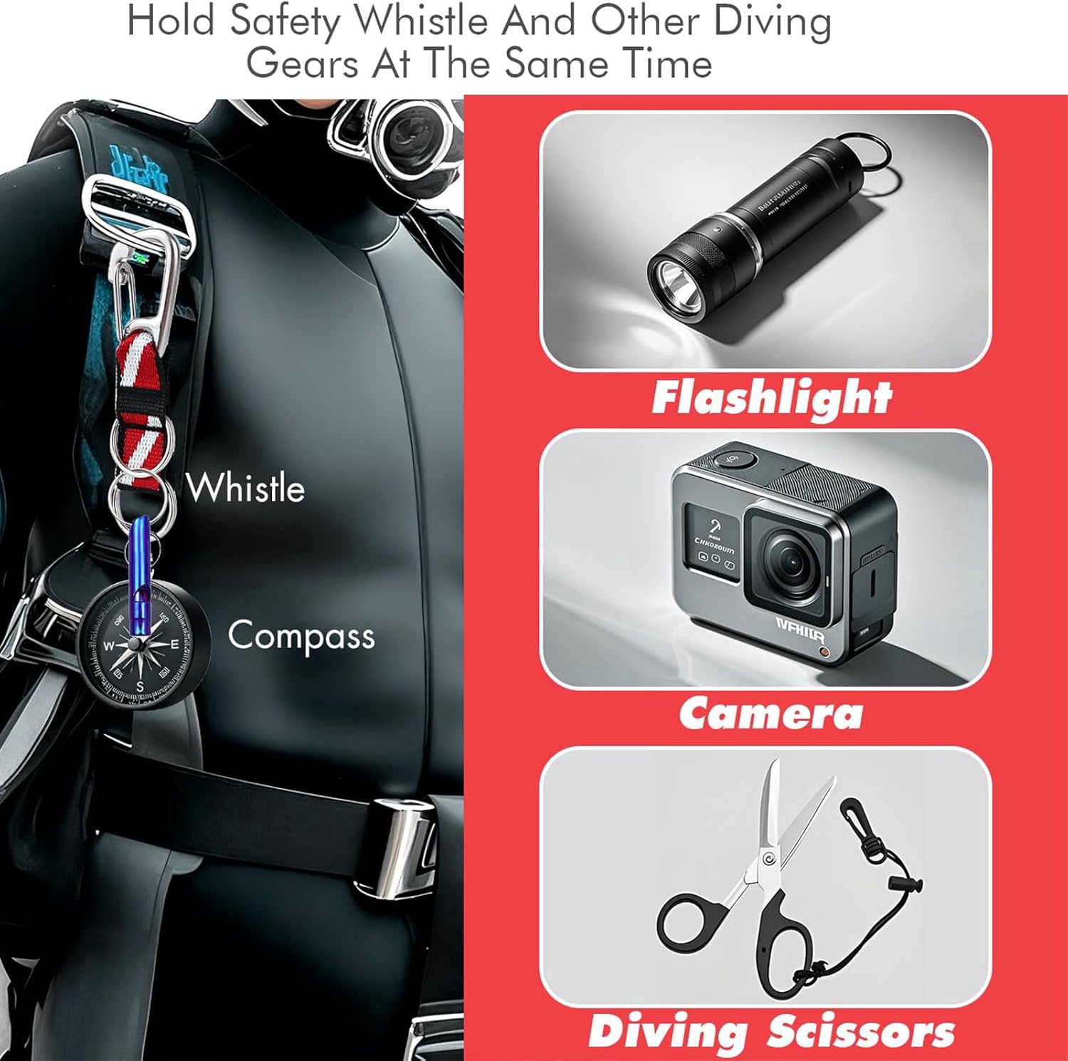 Realizzato in acciaio inossidabile e nylon, garantendo durata, robustezza e longevità, adatto sia per ambienti subacquei che esterni. Dotato di anelli a D per estendere gli anelli di immersione e fissare saldamente piccoli accessori. Questa clip per cordino è compatta ma funzionale, fornendo un'ampia portata. o , facile accesso a qualsiasi cosa, sia che tu stia facendo immersioni o escursioni. La confezione include: 1 cordino per immersioni