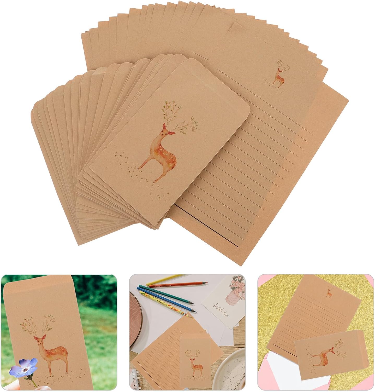 Kit per scrivere lettere: ideale per una varietà di occasioni, lettere d'amore sentite ai biglietti amichevoli, rendendo ogni messaggio speciale, cancelleria per Adesivi in vinile con lettere: questo set presenta un design elegante e minimalista che cattura magnificamente il fascino dell'estetica vintage, cancelleria Carta da lettere: che tu stia scrivendo una lettera d'amore, un biglietto amichevole o un messaggio sentito, questo set è l'ideale per esprimere i tuoi pensieri, carta da lettere a righe Carta macchiata di tè: decorata con graziose illustrazioni di cervi, questo set di scrittura aggiunge un tocco e confortante ai tuoi messaggi, rendendoli più personali, cancelleria per Cancelleria giapponese: realizzata in carta, questa serie garantisce un'esperienza di scrittura e durevole per le tue lettere, carta da lettere per cancelleria