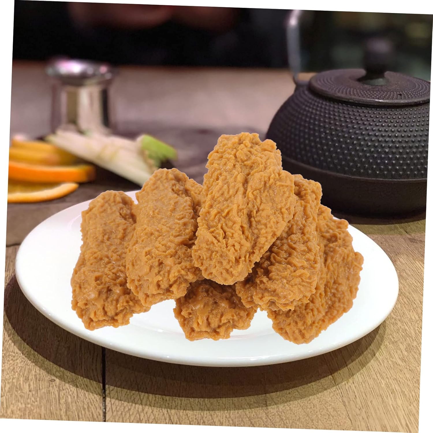 Alette di pollo artificiali: possono essere utilizzate per pubblicità, celebrazioni di conferenze, ciondoli per arredamento, decorazioni, cibo realistico Accessori per alimenti: pregevole fattura con aspetto attraente e realistico, un bel decoro per la tua casa, stampo per di pollo fritte Finto pollo fritto puece: questo di finta ala di pollo, realistico e realistico, può essere utilizzato come decorazione o oggetto di scena per le fotografie, ala di pollo cotta Pollo fritto finto artificiale: puoi usare questo di cibo simulato insieme ad altri per creare una perfetta disposizione della scena, finte di pollo Decorazione alimentare: questo di cibo artificiale non si danneggia né cambia colore, sicuro e protetto per una decorazione a lungo termine, pollo fritto