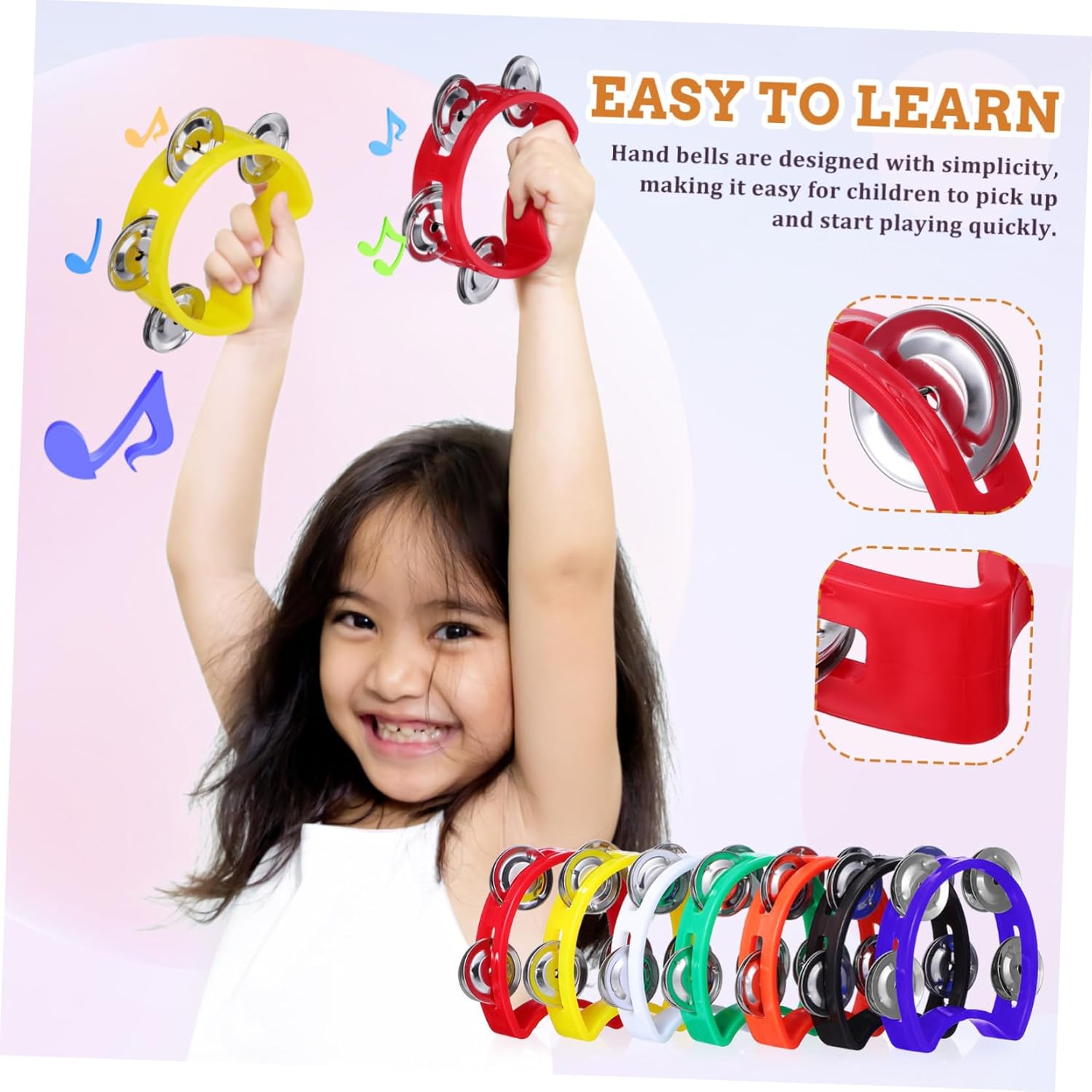 Aspetto colorato: colori vivaci e brillanti che catturano l'attenzione dei e rendono il gioco più divertente, strumenti per , tamburello per Migliora la coordinazione: il piccolo strumento a percussione aiuta a migliorare il senso del ritmo dei attraverso un gioco coinvolgente, tamburello, strumenti musicali per Facile da imparare: i campanelli a mano sono progettati con semplicità, rendendo facile per i imparare e iniziare a suonare rapidamente, tamburelli con campana, strumenti musicali per Materiali sicuri: il tamburello portatile è realizzato con materiali plastici lisci per garantire il comfort dei tuoi , tamburelli da matrimonio, tamburello a mano Facile da usare: le campane a percussione sono semplici e il design intuitivo consente ai di imparare e suonare con facilità, strumenti a percussione per , tamburello portatile per
