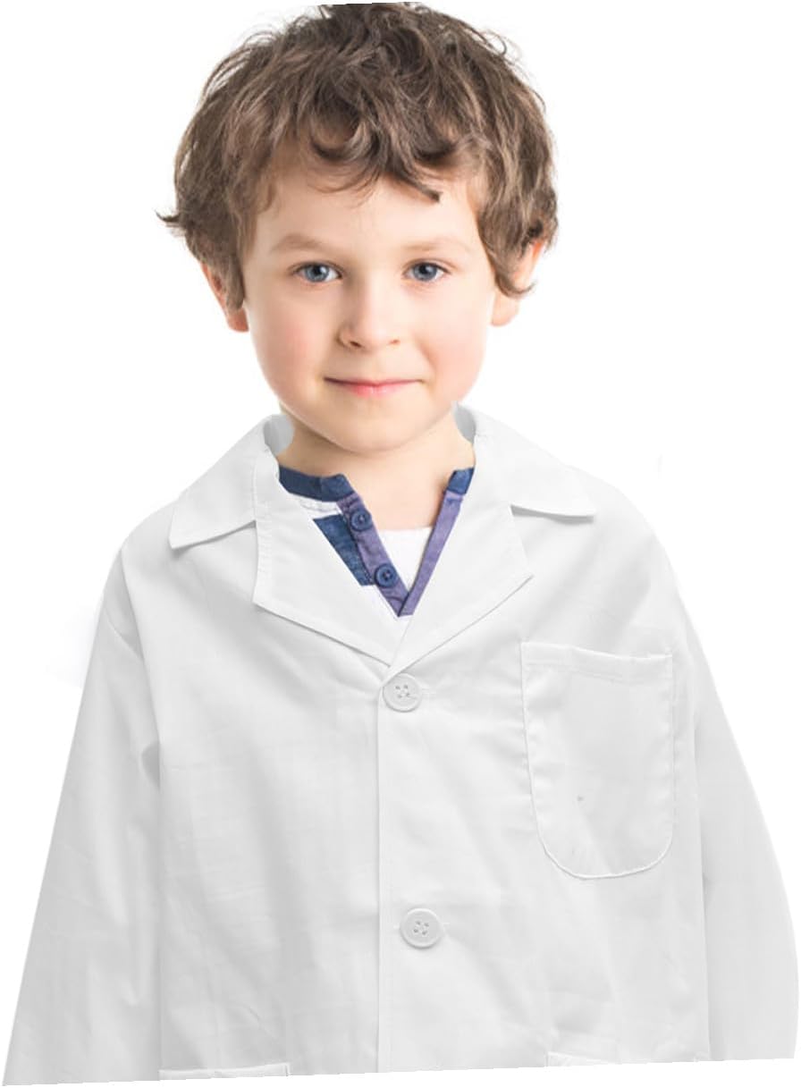 Camice da laboratorio bianco: materiale in tessuto, molto confortevole e traspirante, protegge ogni centimetro della pelle, ottimo regalo per il tuo bambino, vestiti da scienziato Costume da scienziato per: il costume per bambini è particolarmente adatto per feste di cosplay, foto, feste di cosplay o compleanni, camice da laboratorio bianco per Bellissimo camice da laboratorio per: ottima fattura, attento nei minimi dettagli per dargli un aspetto da imitazione da scienziato. Questo camice da laboratorio è dotato di tasche in modo da poter riporre l'attrezzatura mentre si lavora, camice da laboratorio bianco, costume da scienziato cosplay: questo costume da festa è decorativo, ti rende più attraente e ti dà un nuovo look, camice da scienziato, camice da laboratorio per la scienza: carino e alla moda, realizzato in tessuto, il camice può essere indossato in sicurezza per lungo tempo, giacca da laboratorio per