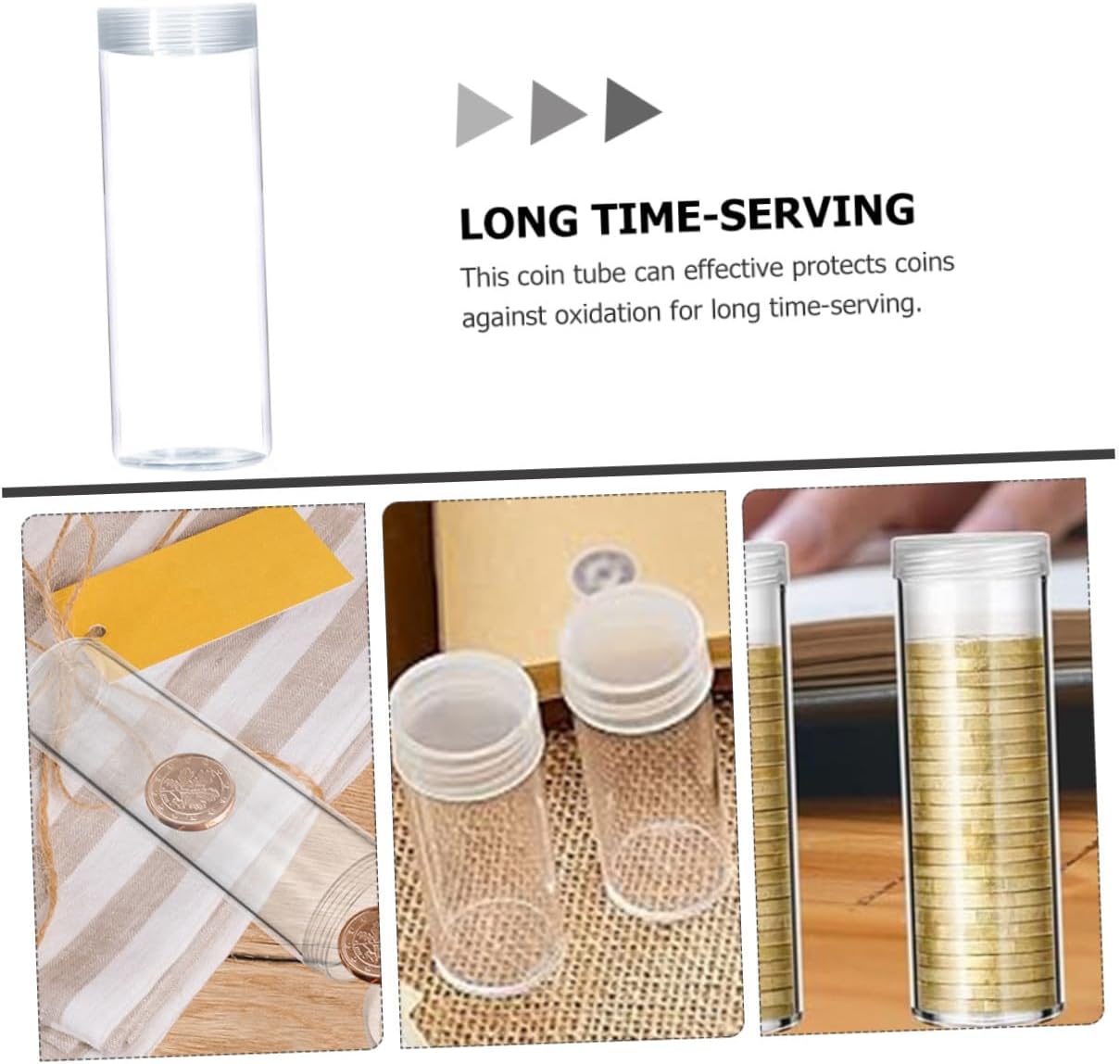 Protezione per monete per tutte le monete: il materiale è sicuro, resistente all'usura e pratico per un uso a lungo termine, tubo da un quarto Tubi portamonete con tappi: con questo portamonete, un tubo portaoggetti trasparente, puoi esporre la tua collezione di entrambe le monete da collezione Tubo portamonete: con questo portamonete puoi esporre facilmente e chiaramente la tua collezione di monete e monete da collezione, tubi portamonete in plastica Tubo portamonete: I tubi trasparenti per monete sono comodi per conservare monete e monete da collezione, sono facili da conservare Portamonete: il design trasparente è un modo buono e pratico per esporre le tue monete, tubi da un quarto