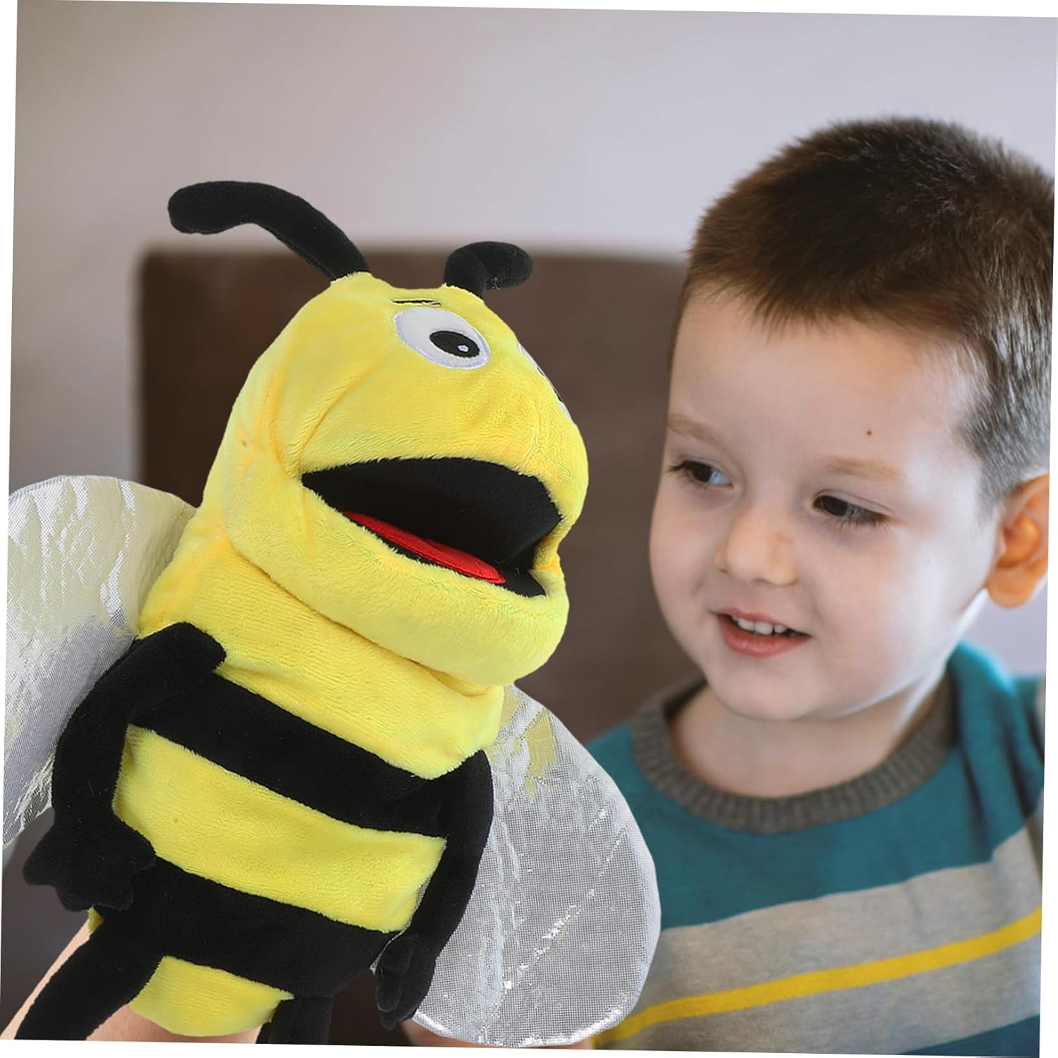 Narrazione interattiva: la marionetta in peluche a forma di ape consente di creare pupazzi creativi, fungendo da giocattolo interattivo genitore-figlio per bambini e genitori, ideale per storie vivide e incoraggia l'immaginazione. Materiale morbido e comodo da indossare: la marionetta in peluche a forma di insetto è riempita con cotone PP, che lo rende elastico e comodo da tenere, rendendolo un comodo burattino a mano per bambini ha dimensioni ottimali per le mani dei bambini: con dimensioni di circa 15 x 12 x 3,5 pollici, la marionetta a forma di ape si adatta bene a bambini e adulti mani, rendendolo un giocattolo versatile per diverse fasce d'età Promuove le abilità creative e sociali: come giocattolo educativo precoce, il burattino a forma di animale supporta lo sviluppo della creatività, delle capacità motorie e della comunicazione emotiva tra bambini e genitori Ideale come regalo per i bambini: il simpatico animaletto dei cartoni animati è adatto come regalo per il compleanno o la festa dei bambini e offre un divertimento duraturo grazie al suo design accattivante e al principio di gioco interattivo
