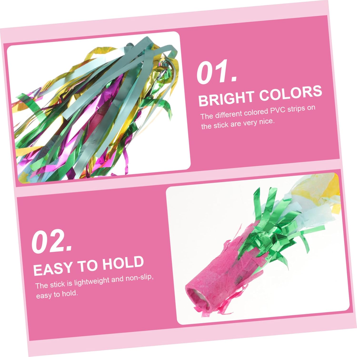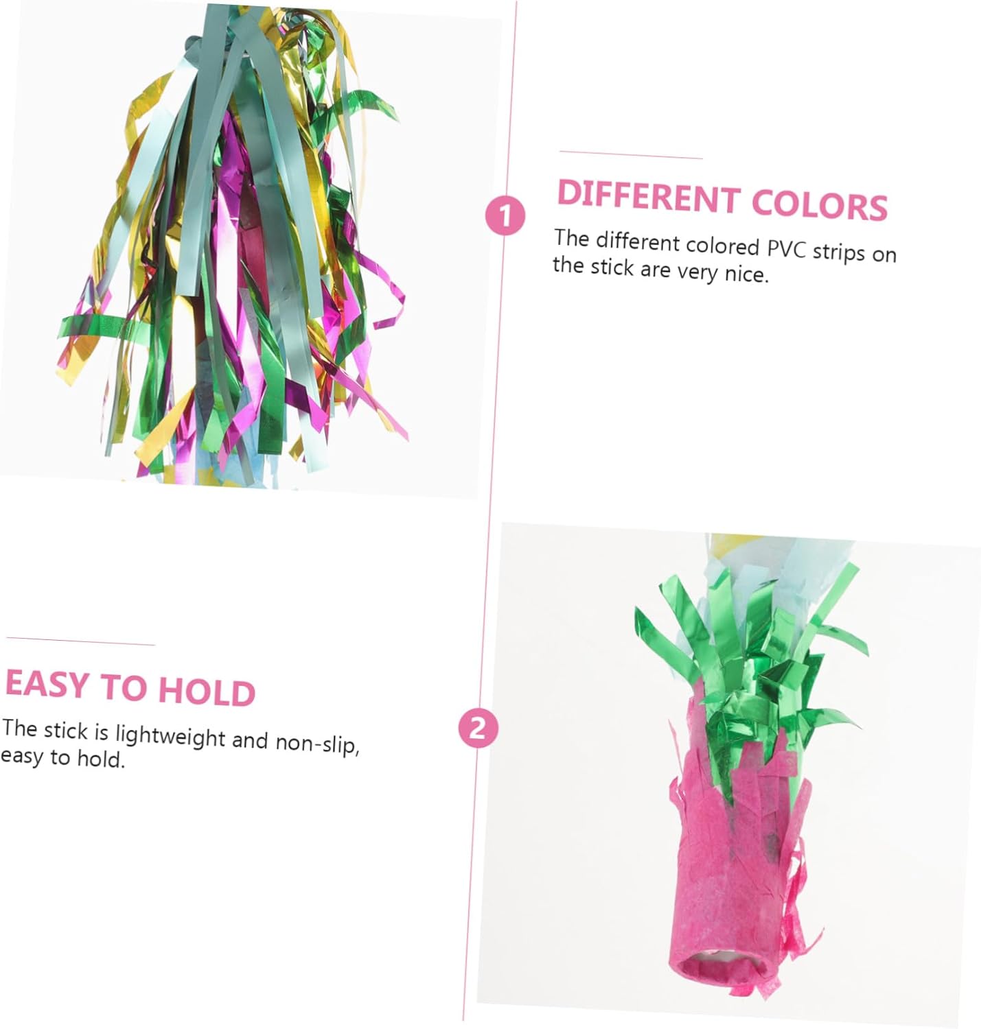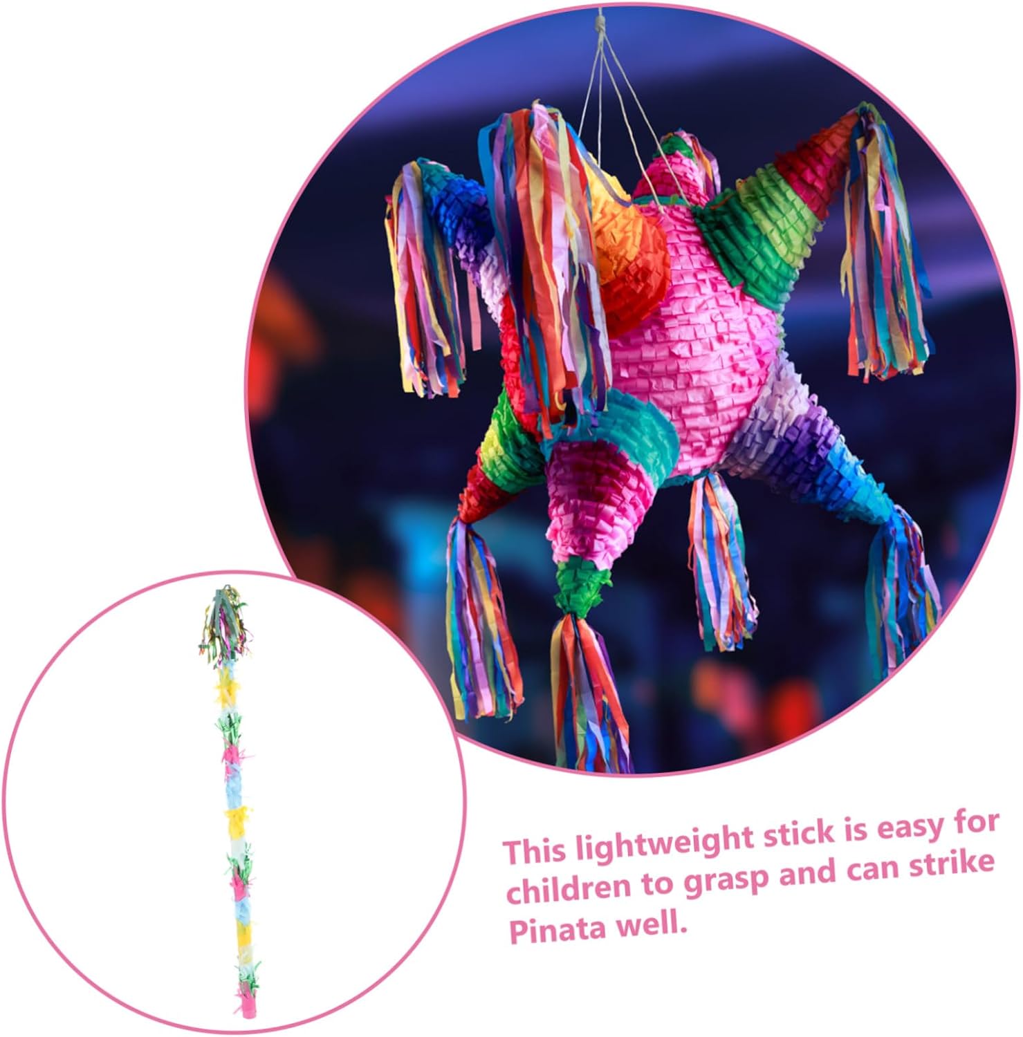 Bastone in PVC: otterrai un bastoncino da piñata con un design dai colori vivaci, utilizzato nei giochi di piñata per feste di compleanno. Il design leggero lo rende facile da afferrare e tenere in mano per ragazzi e ragazze. È divertente creare giochi di piñata per feste Decorazione del gioco: abbastanza bastoncini colorati di piñata, possono essere utilizzati nei giochi di piñata per feste di compleanno Per quanto riguarda la festa di compleanno: avvolta in PVC colorato, divertente e decorativo, adatto per decorare la festa, festa di compleanno Come regalo di compleanno: ideale per giochi di piñata, giochi per feste di compleanno a tema Carnevale, giochi per feste di Halloween, riunioni di famiglia e altri eventi, forniture per feste
