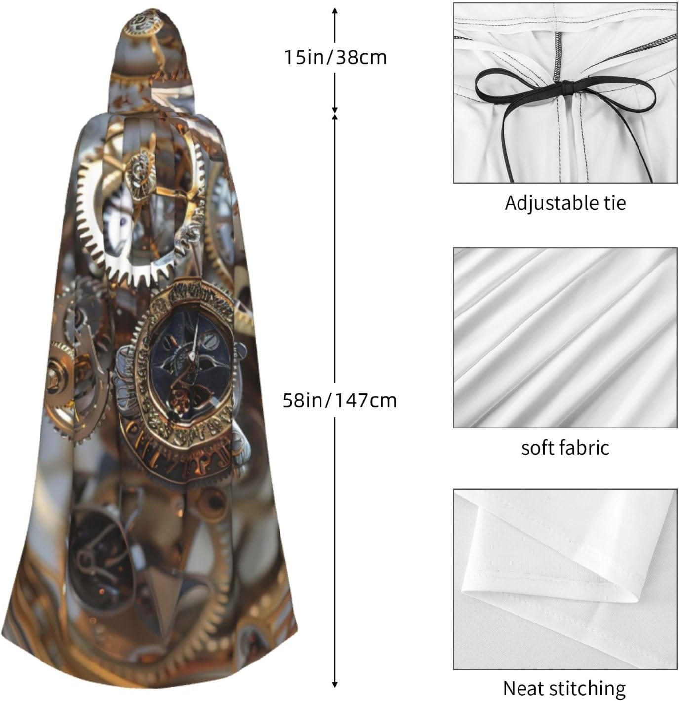 Il mantello con cappuccio per Halloween è realizzato con tessuto in poliestere morbido anche sulla pelle, prevenendo qualsiasi irritazione. Il mantello presenta un ampio cappuccio e uno stile annodato senza cerniere per un design sofisticato ed elegante. Con la sua dimensione universale, offre una copertura completa, adatta a tutti, assicurandoti di distinguerti tra la folla. Questo mantello con stampa orologio non è solo per Halloween; è abbastanza versatile per cosplay, spettacoli teatrali, balli in maschera, feste a tema e molto altro ancora.