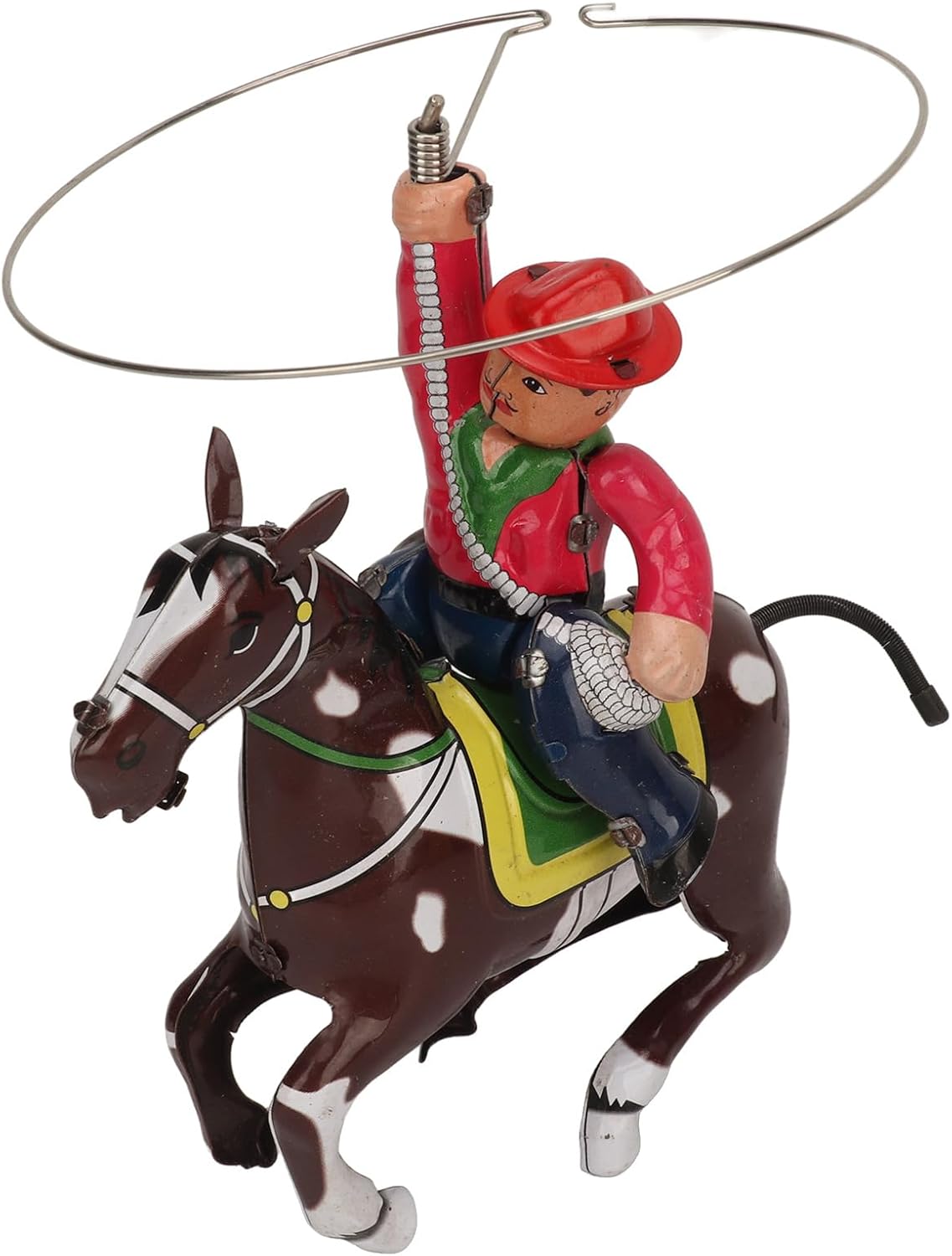 Prestazioni meccaniche: questo giocattolo è dotato di un di meccanico di alta qualità - UP per regolare. Una volta ferito, il cavallo vibra e il Lazo del cowboy, offrendo un'interessante esperienza visiva. Artigianato: meticolosamente realizzato, questo pezzo vintage mostra l'estetica autentica e tradizionale di una figura da cowboy con ogni dettaglio accuratamente costruito. Scenario di utilizzo: ideale per bar, negozi di abbigliamento, caffetterie o case. Questo giocattolo vintage aggiunge un tocco nostalgico e vintage a qualsiasi spazio, soddisfacendo varie esigenze di decorazione. Guida per l'utilizzo: quando si utilizza il giocattolo per la prima volta, non avvolgere il meccanismo di orologio. Per prestazioni ottimali, avvolgilo 1 - 3 cerchi. Evita di avvolgere l'orologio al contrario. Versatilità: ideale per la personalità: gallerie a tema, questo giocattolo di orologio va oltre la decorazione. Il suo fascino vintage racconta storie del passato, migliorando la tua collezione.