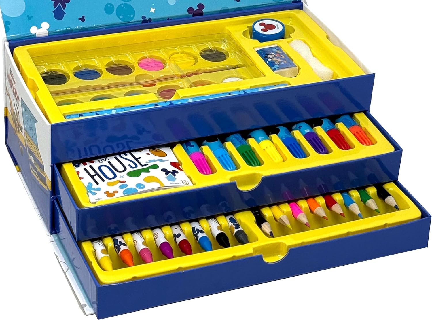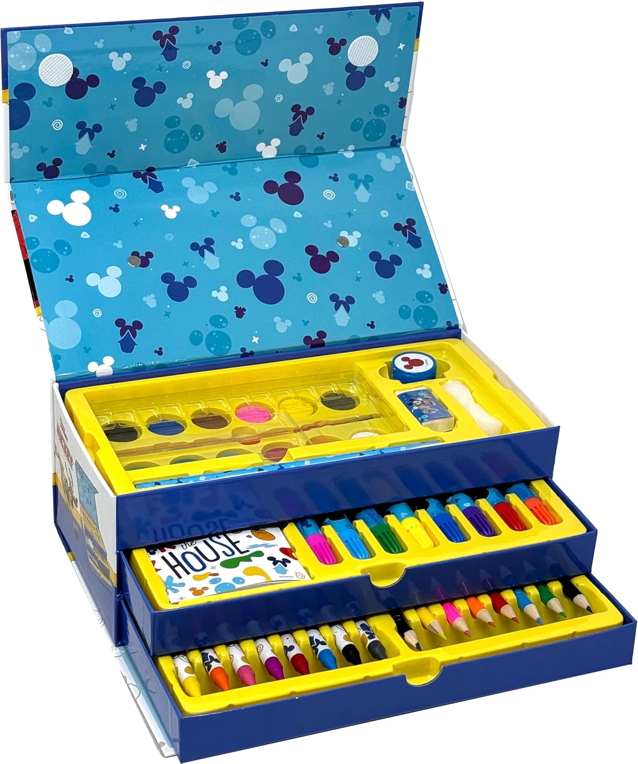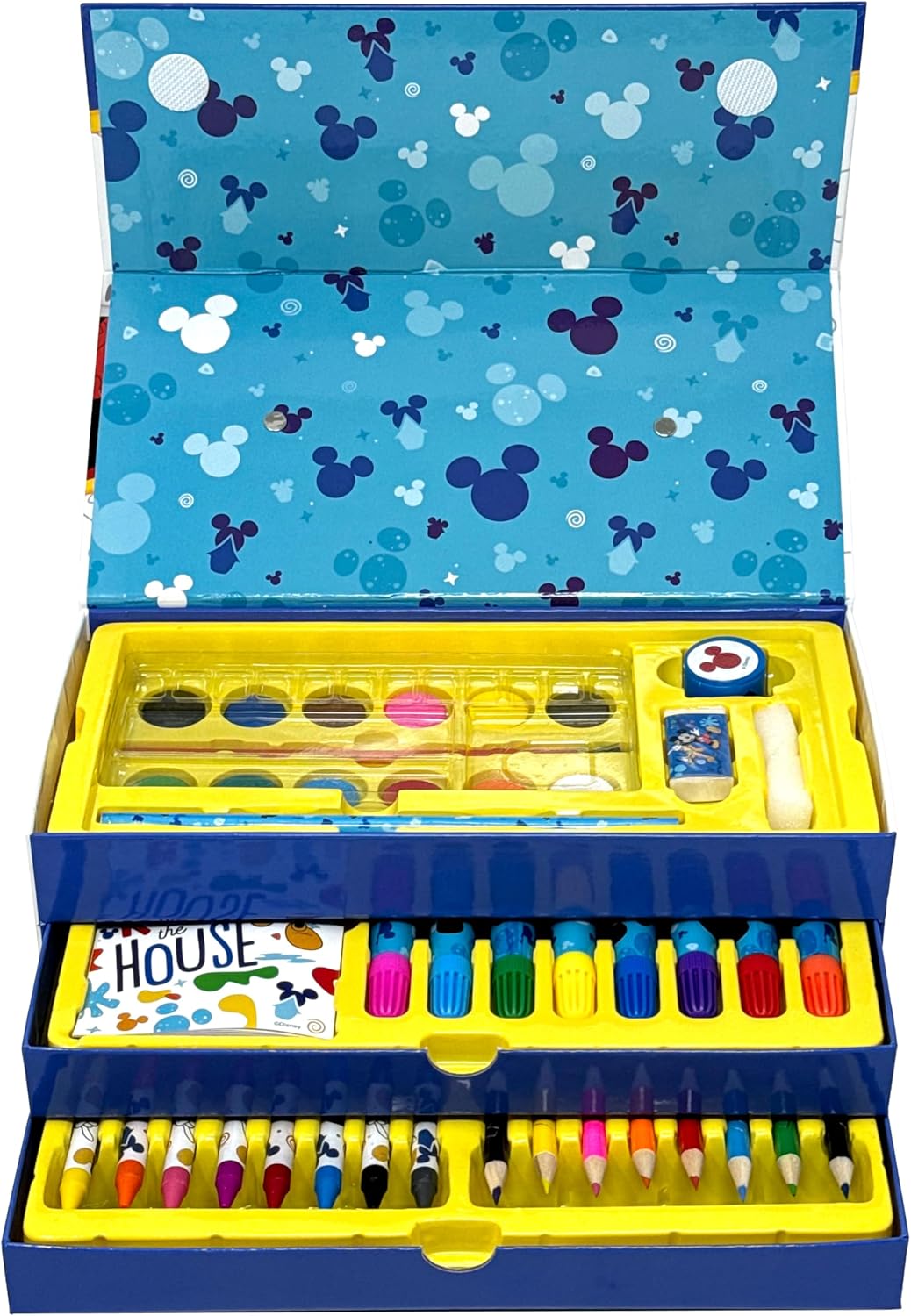 Prodotto con licenza ufficiale. Una carinissima valigetta colori con manico per portarla e usarla ovunque. Più modelli tra cui scegliere. Completo di 52 pezzi, sistemati nei tre diversi comparti: nel ripiano in alto troverete 12 tinte di acquerelli miscelabili nella tavolozza in plastica corredata, 1 pennello e 1 spugnetta, 1 matita, 1 temperamatite e 1 gomma. Nel primo cassetto ci sono 8 pennarelli e 10 disegni raccolti in un album da colorare; nel secondo cassetto sono sistemati 8 pastelli a cera e 8 matite colorate. Dalla scuola al tempo libero, questo kit da disegno è perfetto per ogni avventura creativa! La valigetta ha tutto il necessario per creare disegni, scarabocchi e sperimentare nuove tecniche divertenti ed è il regalo ideale per compleanni, Natale e ogni occasione speciale. Dimensioni scatola: 26 x 13,5 x 9,5 cm.