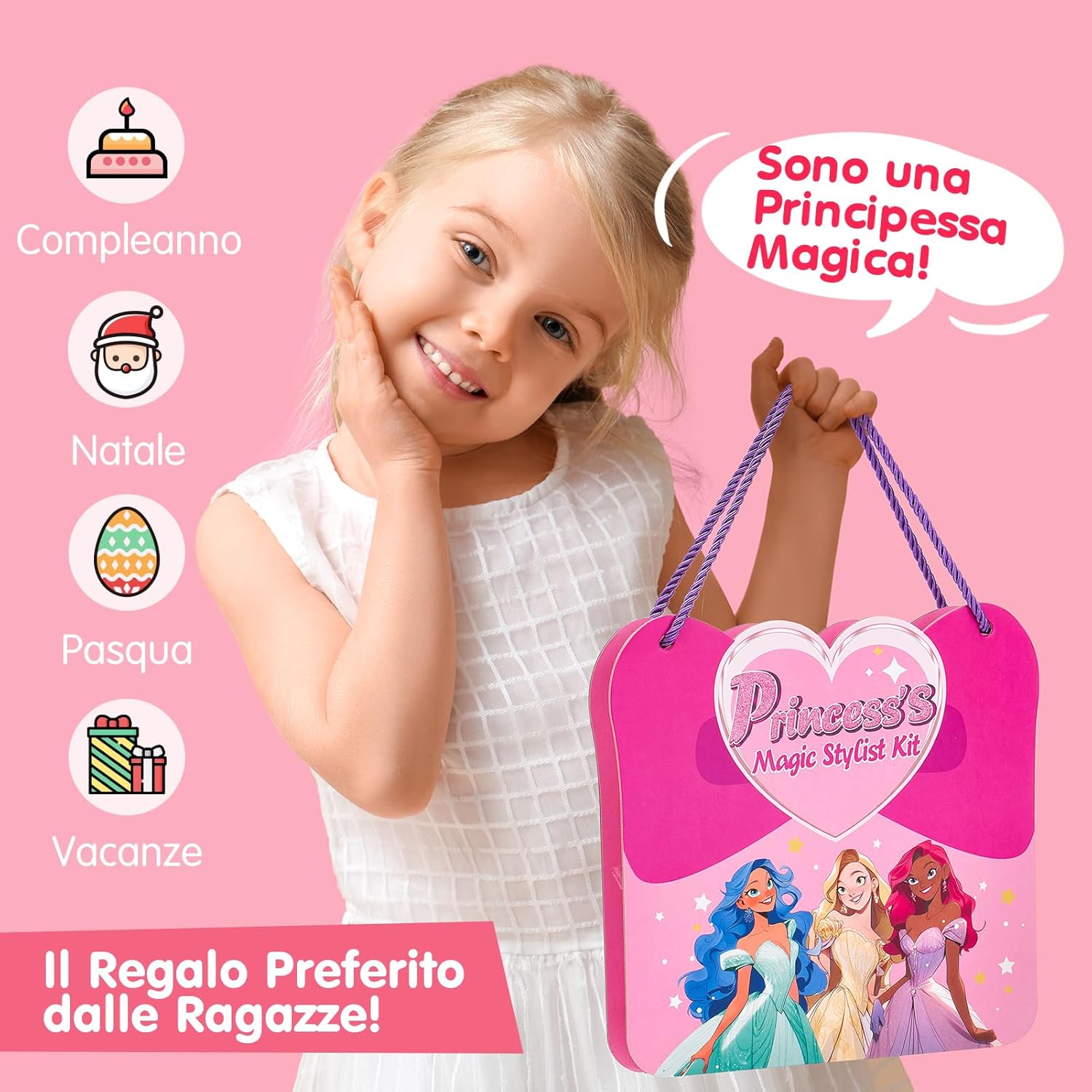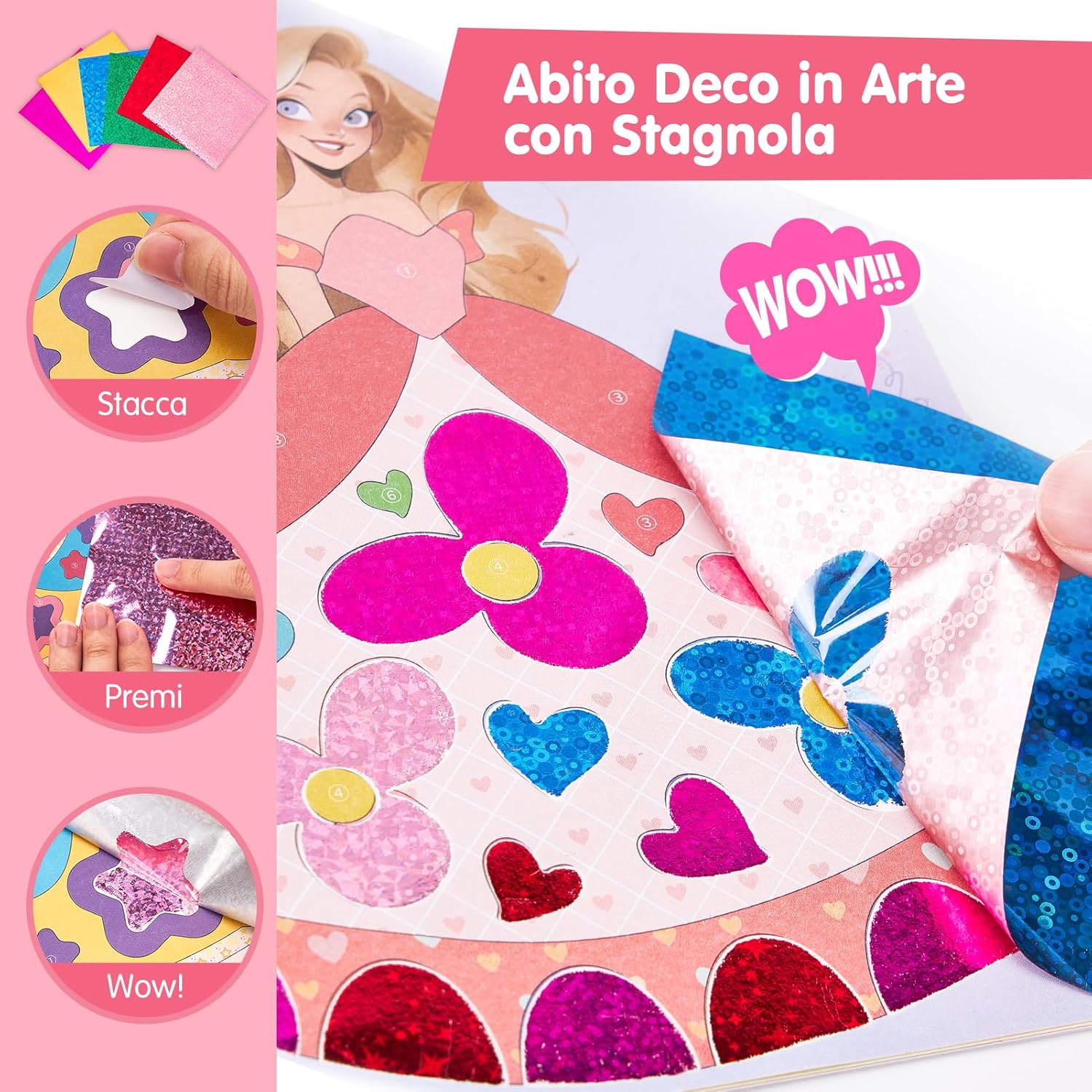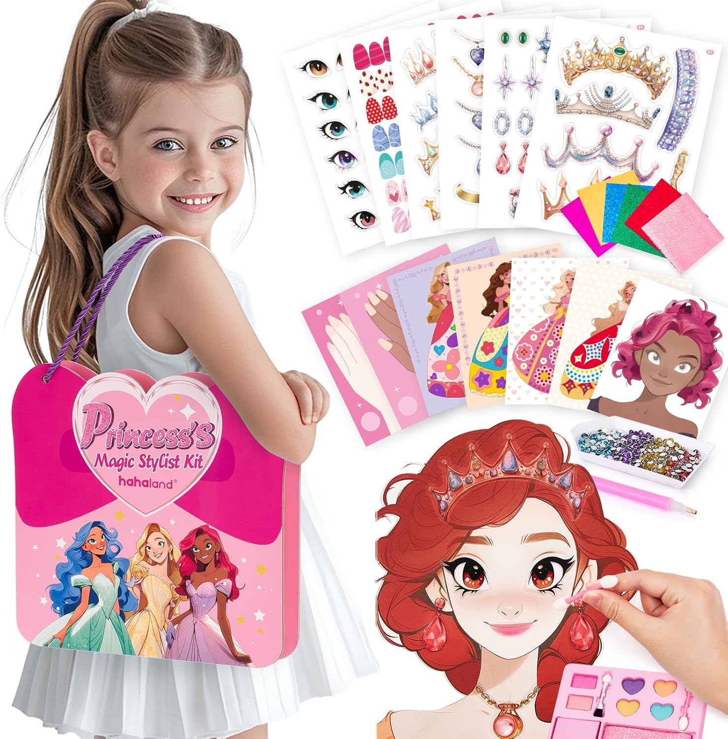 👑【5-in-1 Gioco di Ruolo Creativo】I bambini utilizzano strumenti e accessori per il trucco abbinati per vestire diversi personaggi sul cartone, come ombretti, ciglia, fard, extension per ciglia, lenti a contatto, accessori, ecc. Adesivi con diamanti, carta glitterata, ecc. Lascia che la tua bambina esplori cinque ruoli entusiasmanti: truccatrice, stilista, designer di moda, manicure e costumistaVesti il tuo personaggio per simulare un vera esperienza di travestimento. 🎨【Intrattenimento e istruzione】Include 29 fogli di carta, 4 pacchi di diamanti, 1 vassoio di diamanti, una penna a punti, 6 vassoi di polvere per il trucco, 2 penne per il trucco e 20 fogli di foglio di alluminio, tanti accessori per i bambini per migliorare la loro creatività e l'abilità pratica è di grande importanza educativa affinché i bambini diventino adolescenti. ✨【Progettazione fai da te】I kit fai-da-te possono aiutare i bambini ad alleviare lo stress, aumentare la fiducia in se stessi, regolare le emozioni, sviluppare le capacità artistiche, la pazienza, l'attenzione e la coordinazione visiva dei bambini e arricchire l'immaginazione dei bambini. 🚗【Portatile per i viaggi】Le dimensioni sono 24*24*3,6 cm, dotate di corde facili da trasportare su entrambe le estremità. Perfetto per un intrattenimento tranquillo durante i viaggi in auto, mantenendo attive le manine e i cervelletti in movimento. Perfetto come regalo di compleanno o di Natale per una bambina di 5 anni, promuove lo sviluppo delle abilità senza causare confusione, rumore o tempo trascorso davanti allo schermo. 🎁【Regali originali】Questo set per lo styling magico della principessa è un regalo perfetto per aiutare le ragazze a imparare a truccarsi, stimolare la creatività e l'immaginazione dei bambini ed è adatto a bambini di età superiore a 5 anni per imparare.