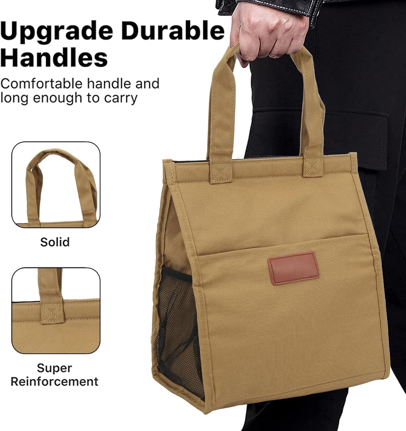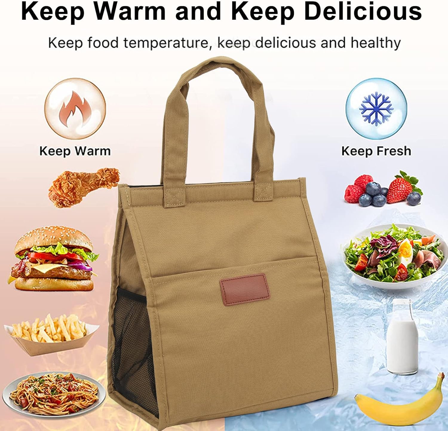 [Isolamento Premium] La borsa pranzo è dotata di un rivestimento interno in tessuto oxford per alimenti spesso 3 mm combinato con strato di alluminio per mantenere i pasti caldi o per ore. Per preservare la freschezza e la temperatura del tuo cibo, che tu sia al lavoro, a scuola o in picnic. [Spazioso & Pratico] Questa borsa pranzo include un'ampia tasca frontale e una tasca laterale in rete, offrendo ampio spazio per piccoli oggetti essenziali come telefoni, chiavi, carte e altro. I compartimenti organizzati rendono facile trasportare tutto ciò che ti serve per la tua routine quotidiana. [Impermeabile e confortevole] Progettato per resistere all'usura quotidiana, questo termobag è sia impermeabile che resistente all'usura. La maniglia confortevole e il design leggero lo rendono facile da trasportare, adatto a tutte le età e per qualsiasi avventura. [Design resistente] Realizzato con tessuto oxford di alta qualità e cuciture rinforzate, questo porta pranzo è costruito per durare. Il nastro in nylon viscosa all'apertura garantisce un accesso facile, mentre la cucitura drappeggiata tra la maniglia e la borsa evita strappi anche con un uso intenso. [Utilizzo versatile] Ideale per varie occasioni, questa borsa termica può servire come portapranzo quotidiano, borsa della spesa, borsa frigo, borsa per la spesa, borsa da picnic o persino come beauty Box/Cover. Il suo design multifunzionale la rende una scelta pratica per qualsiasi stile di vita.
