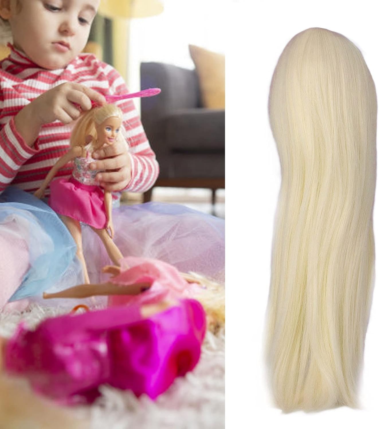 CUOIO CAPELLUTO REALISTICO: ottieni una del cuoio capelluto chiara e realistica, simulando il pizzo agganciato a mano per un look autentico. ARTIGIANATO PREMIUM: eccezionale design a rete interna senza fili sciolti e cuciti sulle tempie per prevenirne la caduta, garantendo una lunga durata. FINITURA LUCIDO: capelli abbondanti e lucenti che resistono alla caduta, perfetti per varie opzioni di styling delle bambole dall'aspetto brillante. MATERIALE RESISTENTE AL CALORE: Realizzato con capelli setosi ad alta temperatura che consentono styling senza sforzo con aste arricciacapelli, simili al mohair senza causare danni. ABBIGLIAMENTO NATURALE: la rete interna flessibile in tre pezzi si adatta perfettamente per un'usura realistica e confortevole, fornendo un risultato senza cuciture e realistico.