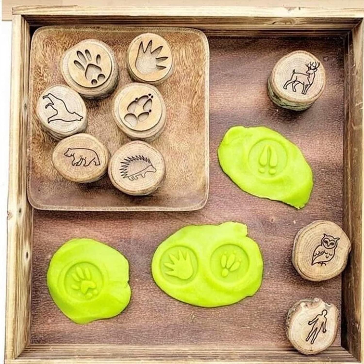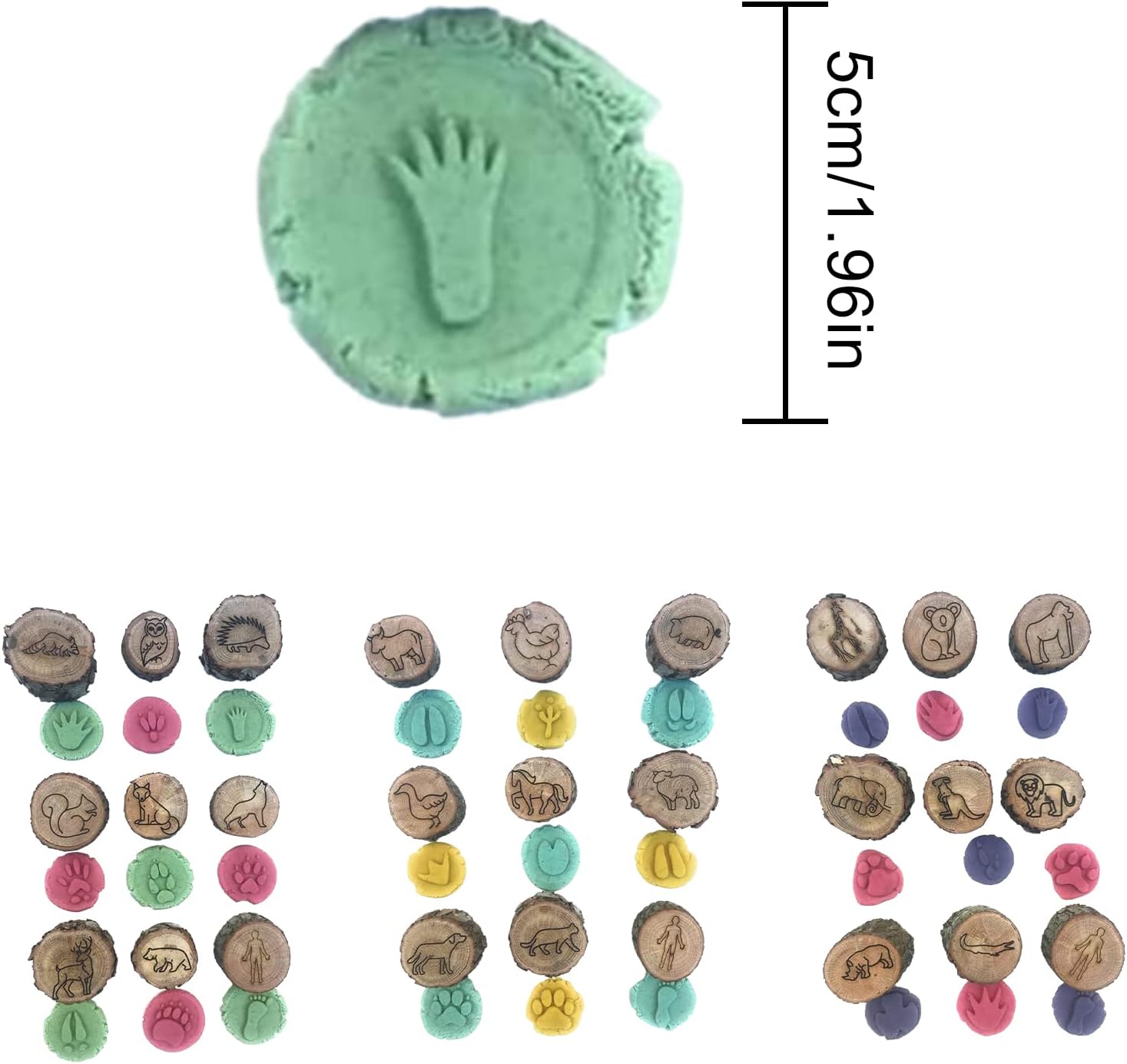 Qualità del materiale: realizzato in legno liscio e duro che resiste a un uso ripetuto. La superficie lucida previene le schegge mantenendo una chiara qualità di impressione Portabilità: pesa solo 20 g per timbro, il design leggero li rende facili da gestire per i bambini. La loro dimensione compatta è conveniente per lo stoccaggio in scatole artigianali o piccoli cassetti Chiarità del pattern: ogni timbro presenta tracce intagliate con precisione che creano impressioni acute e riconoscibili. La profondità coerente garantisce risultati uniformi su diversi tipi di argilla Applicazioni versatili: Adatto per vari materiali di modellazione tra cui argilla polimerica, pasta di gioco e argilla asciutta all'aria. I francobolli funzionano bene sia per ornamenti decorativi che per progetti educativi Collezione di francobolli: questo set include 9 distinti disegni di pista per animali, ciascuno di circa 5 cm di diametro. La varietà consente di creare diversi motivi ispirati alla nei progetti artigianali
