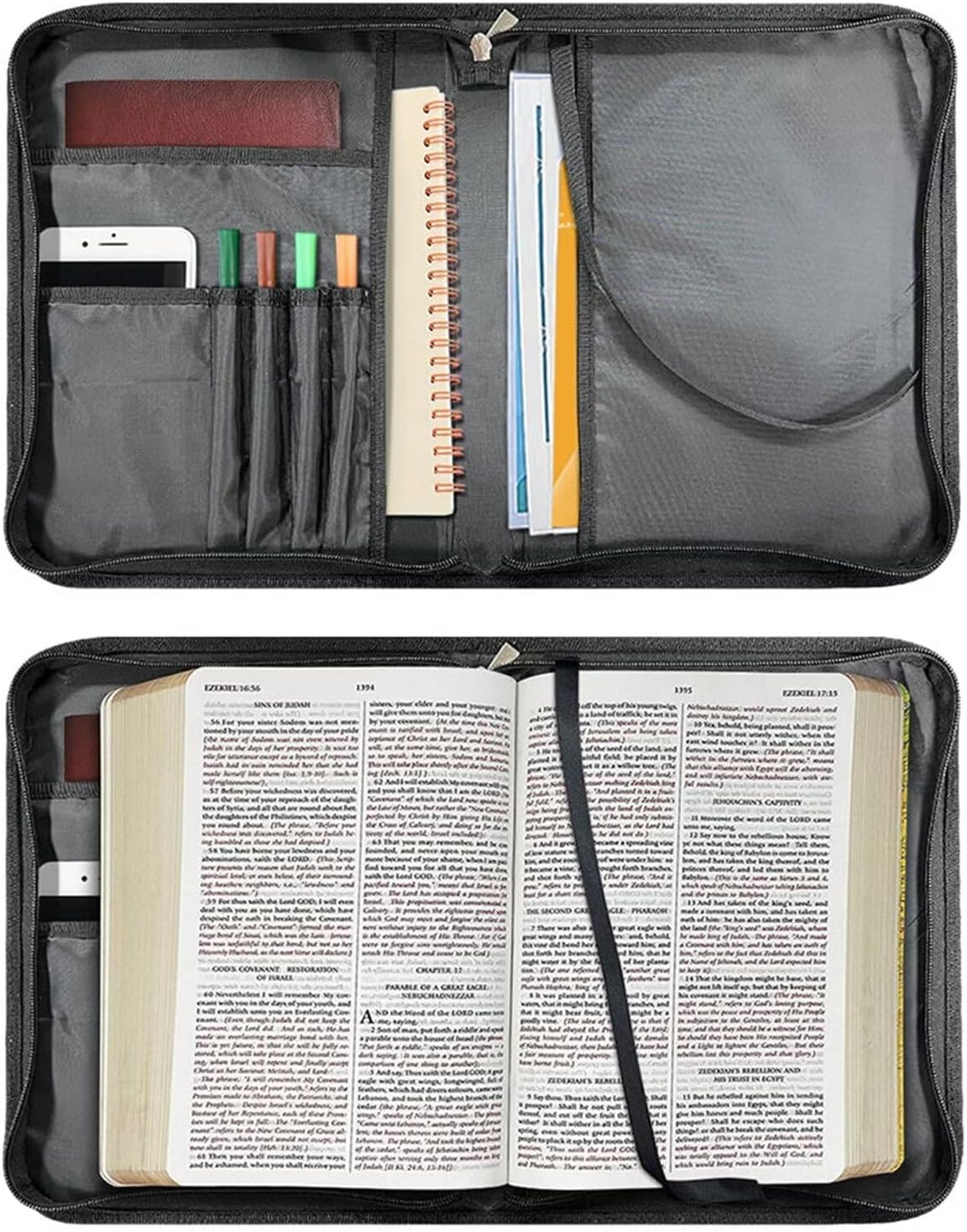 Mantieni la tua bibbia al sicuro: porta la tua Bibbia con te ovunque tu vada nella nostra elegante ma resistente copertina biblica; l'elegante custodia per bibbia proteggerà la tua Bibbia dagli elementi; non preoccuparti mai più che le pagine della Sacra Scrittura siano piegate o strappate. Custodia per bibbia di alta qualità: la copertura per bibbia è realizzata in poliestere, morbida e leggera. Ben fatto con cerniera di alta qualità, tasche all'interno della copertina. Facile da pulire. Perfetto per bibbie/libri/quaderni di dimensioni standard o più piccole. Così come molti altri libri, penne, telefoni cellulari, diari di preghiera e li tiene in ordine. Taglia M: 23,4 cm x 16 cm x 4,1 cm. Taglia L: 25,9 cm x 17,8 cm x 4,6 cm. Taglia XL: L 25,9 cm x 17,8 cm x 4,6 cm (lunghezza x larghezza x altezza). 5,6 cm. 28,5 cm x 20,3 cm x 5,9 cm. Taglia 2XL: 30,5 cm x 22,9 cm x 6,1 cm. Taglia M, L e XL 2XL. Taglie disponibili: Si noti che le specifiche Amazon sono dimensioni esterne della copertina della Bibbia. Per garantire la migliore vestibilità, misurare la Bibbia con precisione Assicurati di lasciare spazio extra per evitare una vestibilità troppo aderente. Ampio spazio: questa custodia per bibbia è progettata con manico, facile da trasportare; una cintura segnalibro per tenere la Bibbia in posizione o come segnalibro; 4 piccole tasche interne per penne; molte altre tasche per carta, segnalibri, adesivi, libri, carte di preghiera, lenti di ingrandimento o altre necessità. Grande capacità, facile da organizzare e riporre. Elegante regalo cristiano: la borsa della Bibbia ha un aspetto fantastico ed è morbida al tatto. I nostri regali biblici per le donne ispireranno te e i tuoi cari ogni volta che li vedranno.