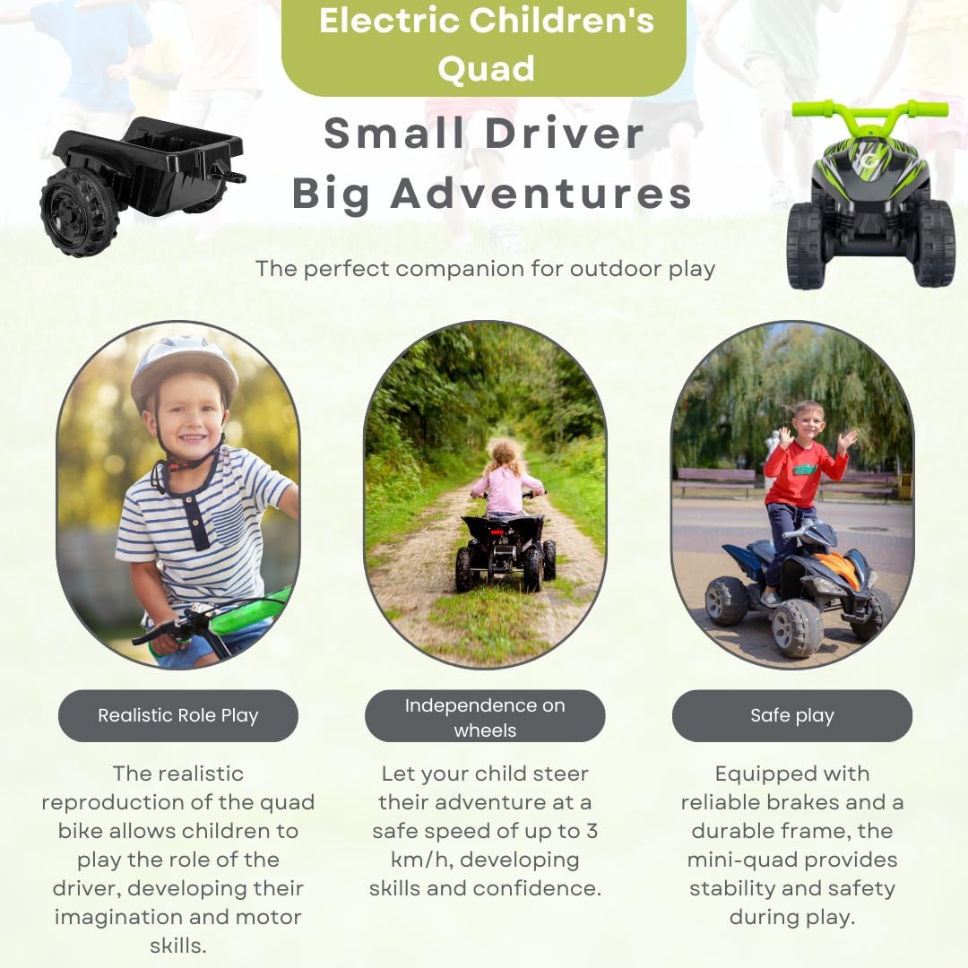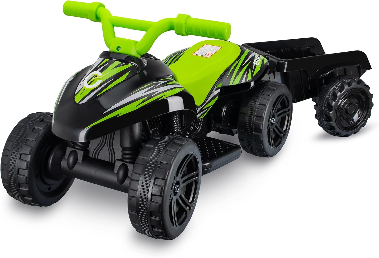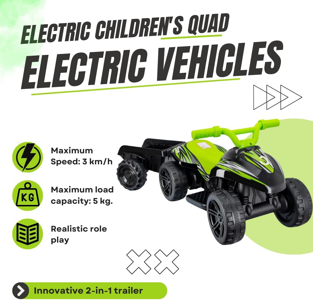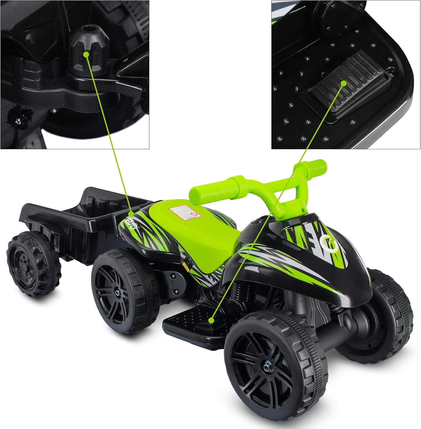 --> [Design innovativo] - Vivi il doppio del divertimento con il nostro quad elettrico per bambini, che contiene un pratico rimorchio per giocattoli o piccoli animali fino a 5 kg. Perfetto per i piccoli avventurieri che vogliono esplorare il loro mondo! --> [Caratteristiche di sicurezza] - Dotato di una struttura robusta e 6 ruote resistenti all'abrasione, questo quad per bambini offre la massima stabilità e sicurezza su tutte le superfici. Ideale per giocare all'aperto in sicurezza --> [Giocattoli multifunzionali] - Questo quad elettrico favorisce la mobilità del tuo bambino grazie a un acceleratore integrato che permette di andare avanti autonomamente. Aumenta la coordinazione e la fiducia di tuo figlio in modo giocoso! --> [Ecologico e silenzioso] - Il nostro quad elettrico per bambini non è solo ecologico, ma funziona anche in silenzio, il che lo rende ideale per il gioco in aree residenziali. Promuovi la consapevolezza ambientale del tuo bambino fin dalla piccola! --> [ ADATTO PER QUALSIASI SOTTOFONDO] - Le ruote durevoli e la batteria potente consentono avventure su diverse superfici e offrono ore di divertimento. Che si tratti di prato, ghiaia o asfalto, questo quad rende ogni viaggio un piacere sicuro!