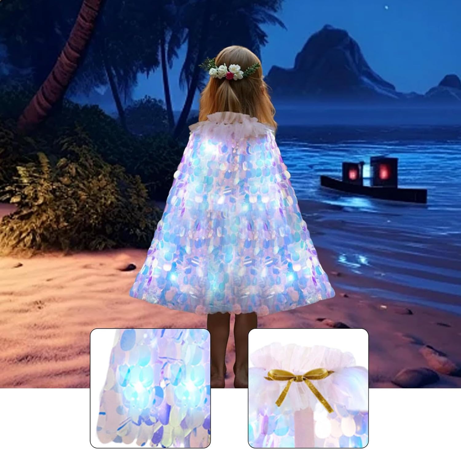 【Adatto alla maggior parte dei bambini】: il mantello in tulle presenta un design regolabile con una lunghezza di 70 cm/27,56 pollici, rendendolo adatto a bambini dai 3 ai 10 anni e versatile 【Facilmente abbinabile】: accessori per costumi si sovrappongono facilmente a vestiti o abiti per una trasformazione immediata 【Materiale morbido e confortevole】: il costume da cosplay è realizzato in rete morbida, confortevole e leggera, che consente un comodo utilizzo per tutto il giorno 【Ideale per le vacanze】: il mantello da principessa per ragazze è perfetto per Halloween, Natale, feste di compleanno o come principessa sirena, aggiungendo un tocco di fantasia a qualsiasi occasione 【Costume con luci a LED】: il mantello da principessa presenta un motivo a scaglie scintillanti e luci a LED scintillanti, creando un bagliore accattivante per feste ed eventi
