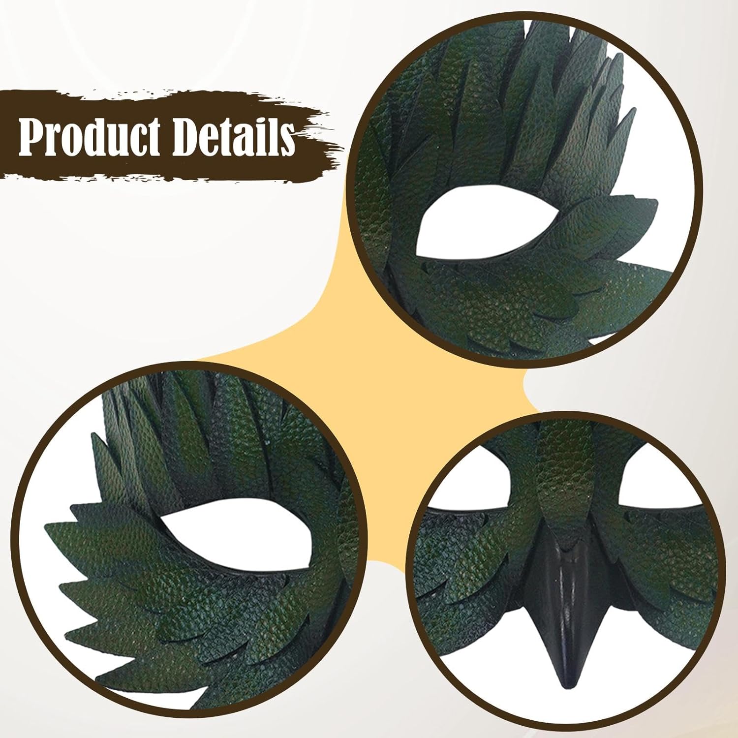 【Superficie liscia e forma realistica】: la maschera mezza faccia ha una superficie liscia e un design realistico del becco, aggiungendo una sensazione reale al tuo costume 【Materiale】: la maschera per uccelli è realizzata in PP e pelle PU, con un aspetto unico e garantendo al contempo durata 【Adatto per feste di Halloween】: la mascherina è la scelta ideale per accessori decorativi per feste di Halloween o eventi in maschera, aggiungendo elementi divertenti e misteriosi alla tua collezione di costumi per adulti 【Vestibilità regolabile】: la maschera da ballo ha una buona elasticità e dimensioni regolabili, e la fascia elastica allargata garantisce comfort e può essere indossata in modo sicuro durante l'evento 【Versatile】: la maschera da ballo può soddisfare le preferenze personali ed è adatta per qualsiasi festa di Halloween o a tema