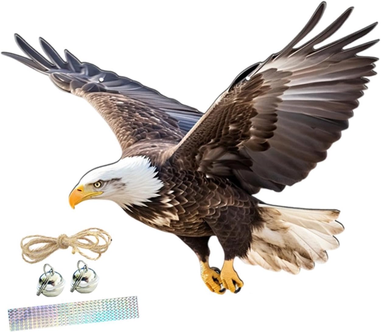 【Kit completo per appendere incluso】: viene fornito con tutto il necessario per una facile installazione: 1 decorazione , due campanelli, una corda di iuta da 60 cm e un nastro fantasy da 60 cm per garantire un posizionamento sicuro ovunque tu scelga di appenderlo 【Uso versatile】: la decorazione ' ha una dimensione ideale per vari ambienti esterni senza essere invadente 【Materiale di qualità】: realizzato in materiale PP di qualità, questo ornamento ' è progettato per resistere alle condizioni esterne mantenendo il suo aspetto e la sua funzionalità nel tempo 【Decorazione efficace】: Caratterizzata dal classico design a forma di , questa decorazione da appendere è ideale per spaventare uccelli e piccioni da giardino, patio, cortile o garage. Il nastro e i campanellini fantasia ne aumentano l'efficacia nel tenere lontani uccelli indesiderati. 【 il tuo spazio esterno】: questo ornamento da giardino a forma solo funge da efficace deterrente per uccelli, ma aggiunge anche un tocco di arredamento esterno alla tua casa con il suo design sorprendente