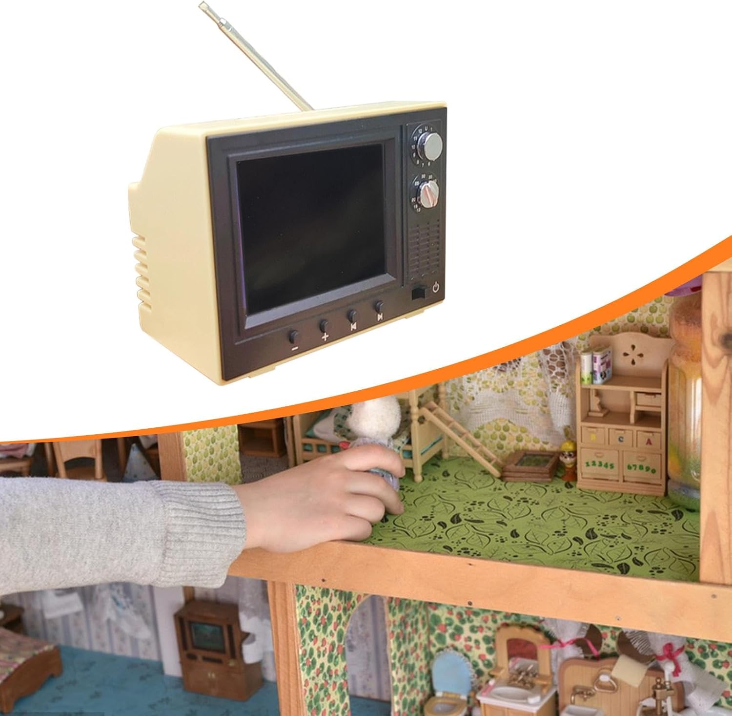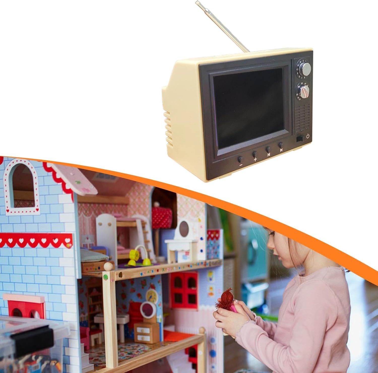 【TV in miniatura realistica】: perfetto per case delle bambole in 1/12, microscene e oggetti di scena per il soggiorno, questo mini mobile TV è dotato di schermo e di un design dettagliato per migliorare il tuo mondo in miniatura 【Pratica ricarica USB】: Ricarica facilmente tramite USB standard; una ricarica rapida di 30 minuti fornisce fino a 150 minuti di riproduzione continua. La memoria integrata da 8 GB ti consente di caricare i tuoi video preferiti 【Set completo incluso】: Ogni confezione contiene 1 modello di televisore in miniatura con tutte le funzioni pronte all'uso: un'aggiunta accattivante a qualsiasi scena in miniatura o collezione di giocattoli 【Materiale e dimensioni compatte】: Realizzato in PP di qualità con display a LED. Le dimensioni sono 8,5 cm x 5 cm x 6,3 cm / 3,35 pollici x 1,97 pollici x 2,48 pollici; la lunghezza dell'antenna è 5,8 cm / 2,28 pollici: dimensioni ideali per allestimenti di case delle bambole o espositori da collezione. 【Funzioni di riproduzione multiple】: supporta MP4 e altri formati video (richiede compressione della risoluzione), con pulsanti intuitivi per traccia precedente/successiva, controllo del volume, accensione/spegnimento e avanzamento/riavvolgimento rapido premendo a lungo