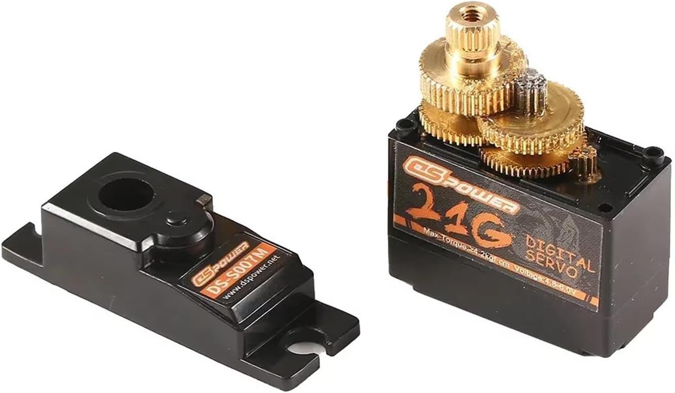 【Ingranaggi in metallo e design impermeabile】: Progettato con robusti ingranaggi in metallo in di sopportare carichi elevati e resistere allo strappo. La costruzione impermeabile consente di affrontare con sicurezza terreni bagnati e fangosi senza rischiare danni. 【Cosa ottieni】: Ogni confezione contiene un servo digitale 21G completo, per essere installato nel tuo veicolo RC 【Ottimo aggiornamento per la tua auto RC】: l'ingranaggio in metallo da 21 g per modelli in 1/12 è adatto per MN82, MN99S, MN168, MN78 e , cingolati e camion RC 【Specifiche dettagliate】: Questo servo 21G funziona con una tensione standard da 4,8 6,0 V . Presenta dimensioni compatte di 2,96 cm x 1,32 cm x 4 cm/1,17 pollici x 0,52 pollici x 1,57 pollici per un facile montaggio e vanta un ampio angolo operativo massimo di 180° 【Prestazioni digitali ad alta coppia】: il servo digitale fornisce una coppia impressionante fino a 4,20 kgf·cm a 6,0 V. Goditi tempi di risposta rapidi e bassa rumorosità operativa per un'esperienza di guida migliorata