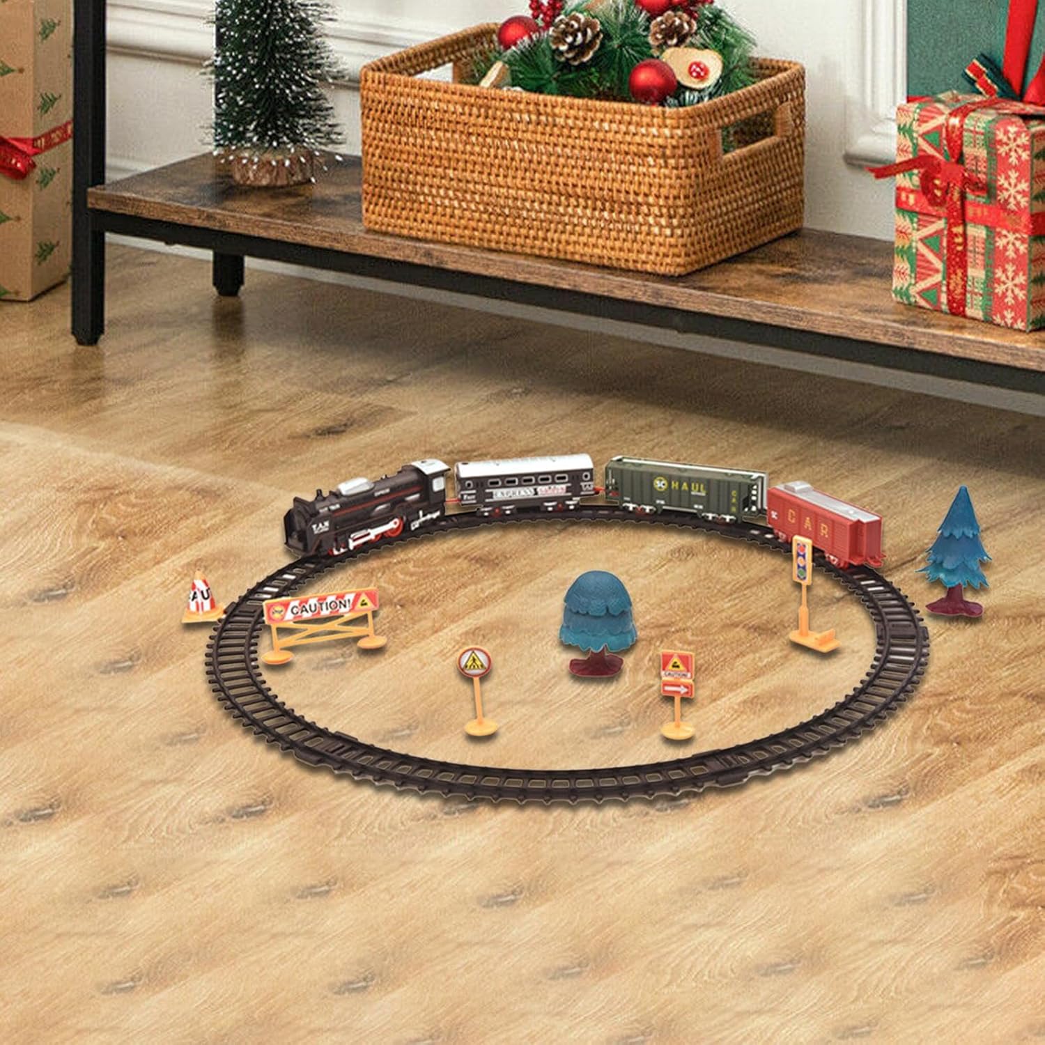 【Gioco interattivo】: il giocattolo del treno elettrico trasporta carrozze e si muove lungo i binari, accompagnato da luci e suoni del treno. Con più accessori inclusi, i bambini possono assemblare una varietà di modelli di treni e diversi. 【Scelta regalo ideale】: il giocattolo del treno dell'albero di Natale è un regalo di festa per bambini, ragazzi e ragazze. 【Giocattolo classico del treno】: questo classico set di treni è progettato con ruote push-pull e movimento in avanti a velocità variabile. È un bel regalo per i bambini che treni e amano il gioco fantasioso. 【Effetti realistici di luce e suono】: il set del treno è dotato di una funzione di suono e luce del treno che produce suoni realistici di fischio del treno per un'esperienza coinvolgente. 【Materiale】: questo set di giocattoli del treno è realizzato in PP e componenti elettronici, è progettato per durare a lungo. Funziona con 5 batterie AA (non incluse)