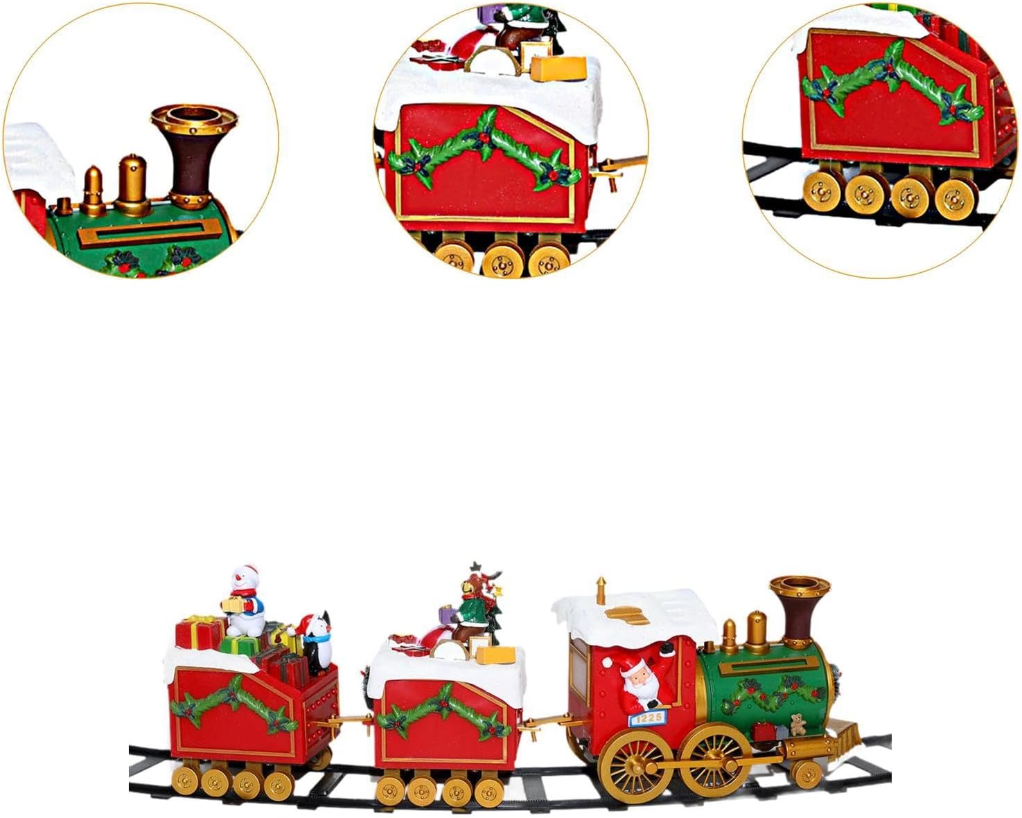 【Regalo】: il set di giochi con binari per trenini elettrici è un regalo di Natale ideale per i bambini 【Dimensioni】: giocattolo per bambini misura 53 cm x 11 cm x 14 cm, il che lo rende un'aggiunta accattivante alle tue decorazioni natalizie senza occupare troppo spazio 【Contenuto della confezione】: giocattolo per bambini per l'albero di Natale include un piccolo treno e una pista da 1,35 metri, fornendo tutto il necessario per creare un'affascinante decorazione natalizia 【Decorazione natalizia】: il set di trenini natalizi è una decorazione per l'albero di Natale che crea un'atmosfera festosa in qualsiasi ambiente. Viene fornito con una pista con un diametro di 1,35 metri che gira intorno al tuo albero di Natale 【Materiale】: il giocattolo del trenino di Natale è realizzato in materiale metallico, che ne garantisce una lunga durata e il riutilizzo per molti venire